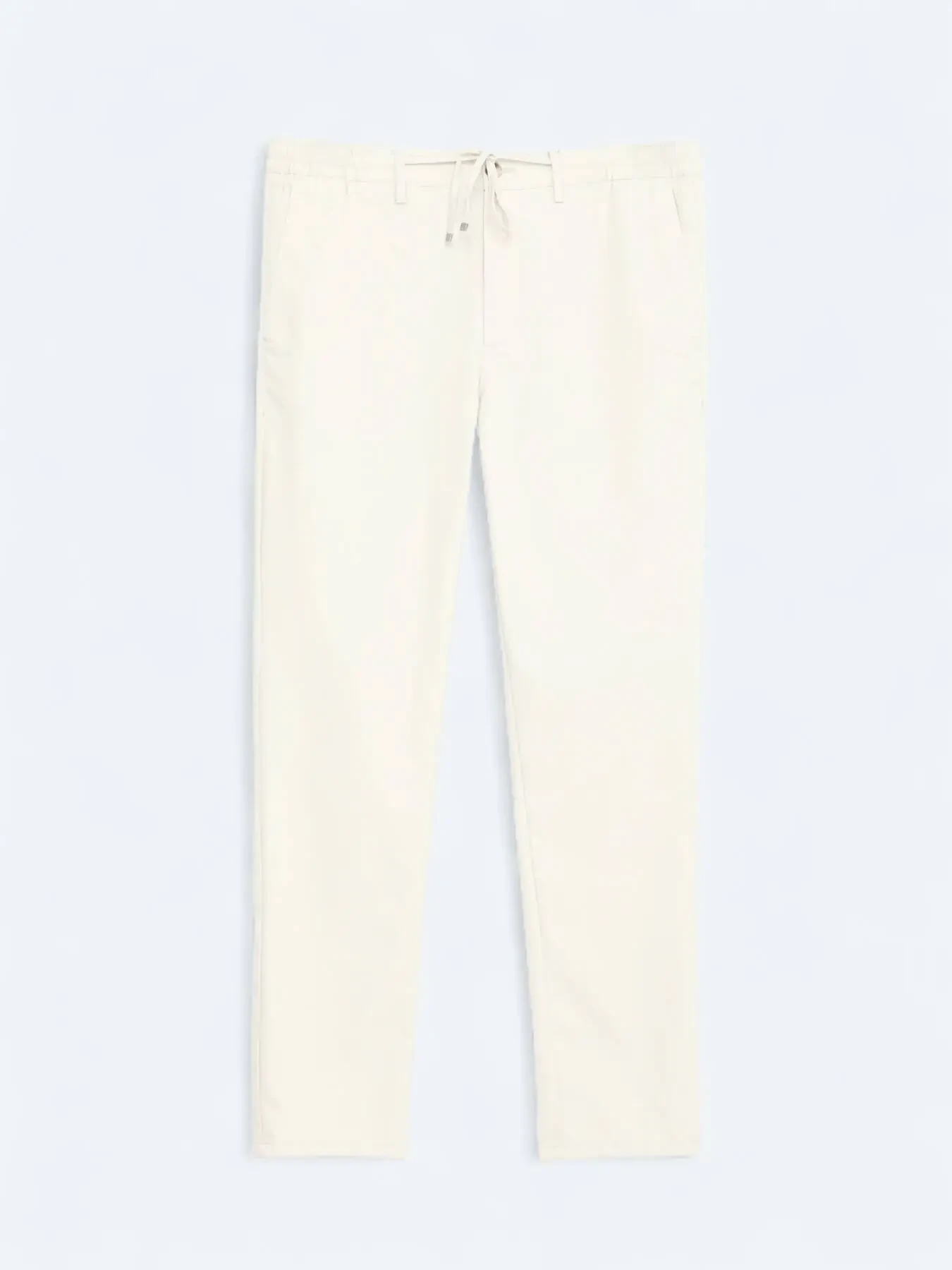 Light Beige Weaving Jogging Fit Casual Trousers - 1