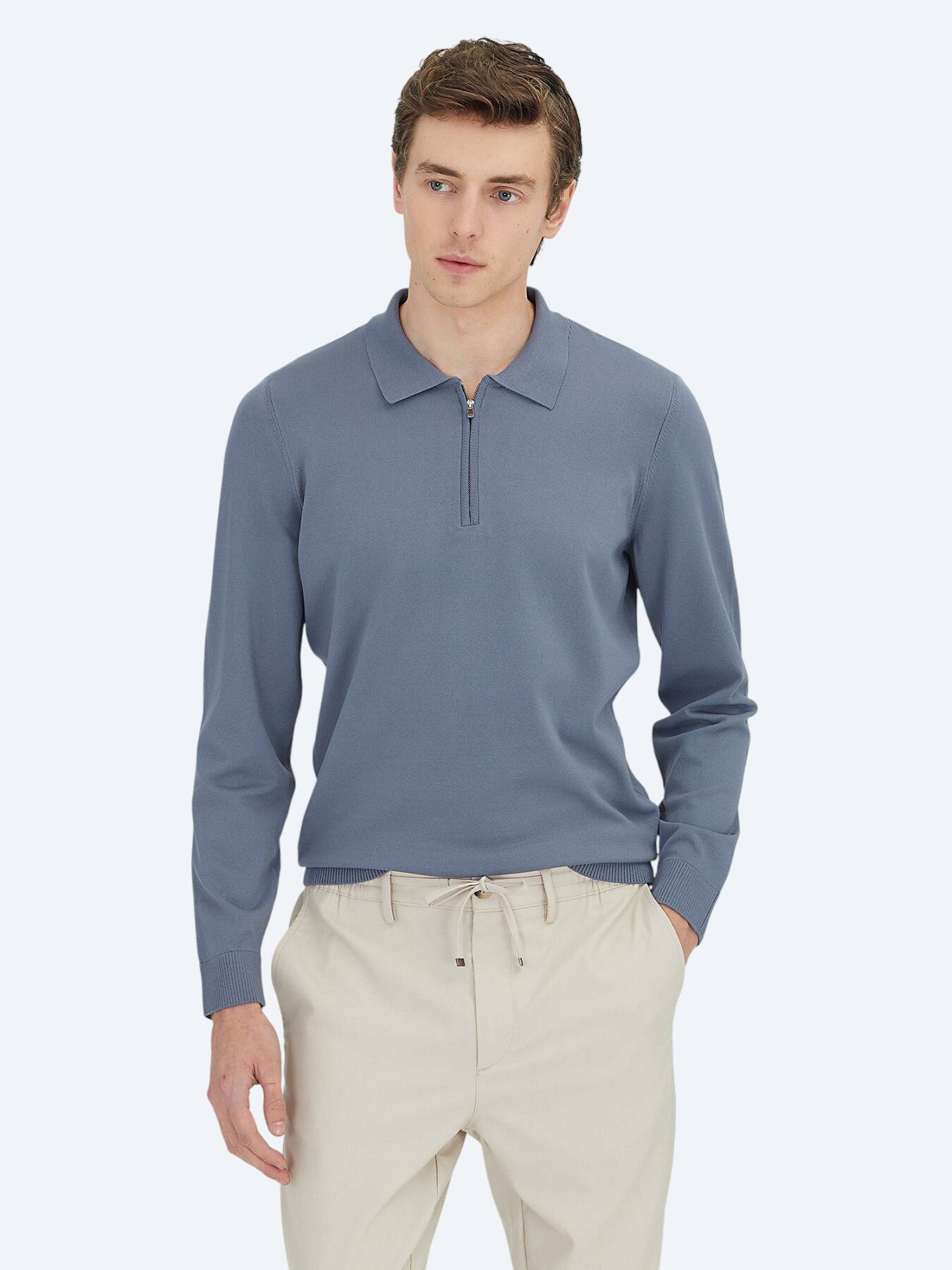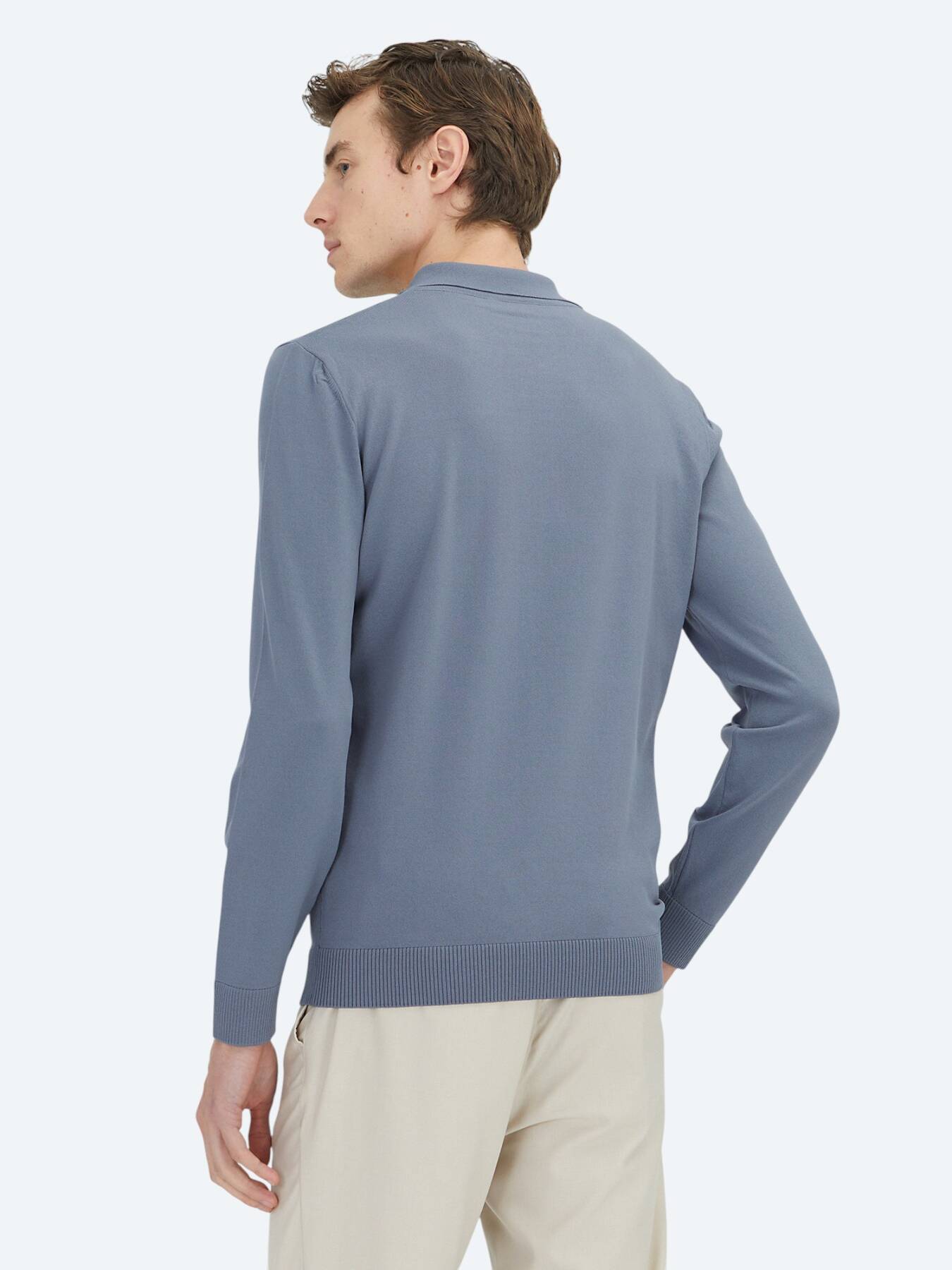Regular Fit kesimi ise vücudu saran ama daraltmayan rahat bir kullanım sunar. Mavinin zamansız şıklığı ile triko, hem ofis stiline hem günlük kullanıma kolayca adapte olur.