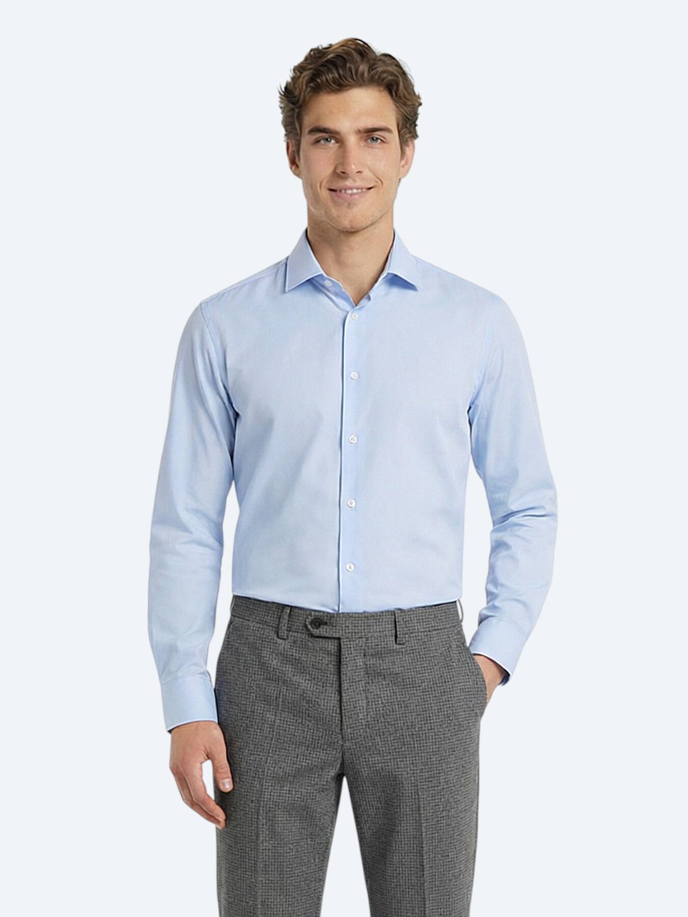 Notify me when its in stockThis light blue slim fit shirt brings a touch of light color and timeless style to the modern man's wardrobe. Thanks to its 60% cotton content, it provides breathability in daily wear; 40% polyester offers the advantage of easy care and wrinkle-free.