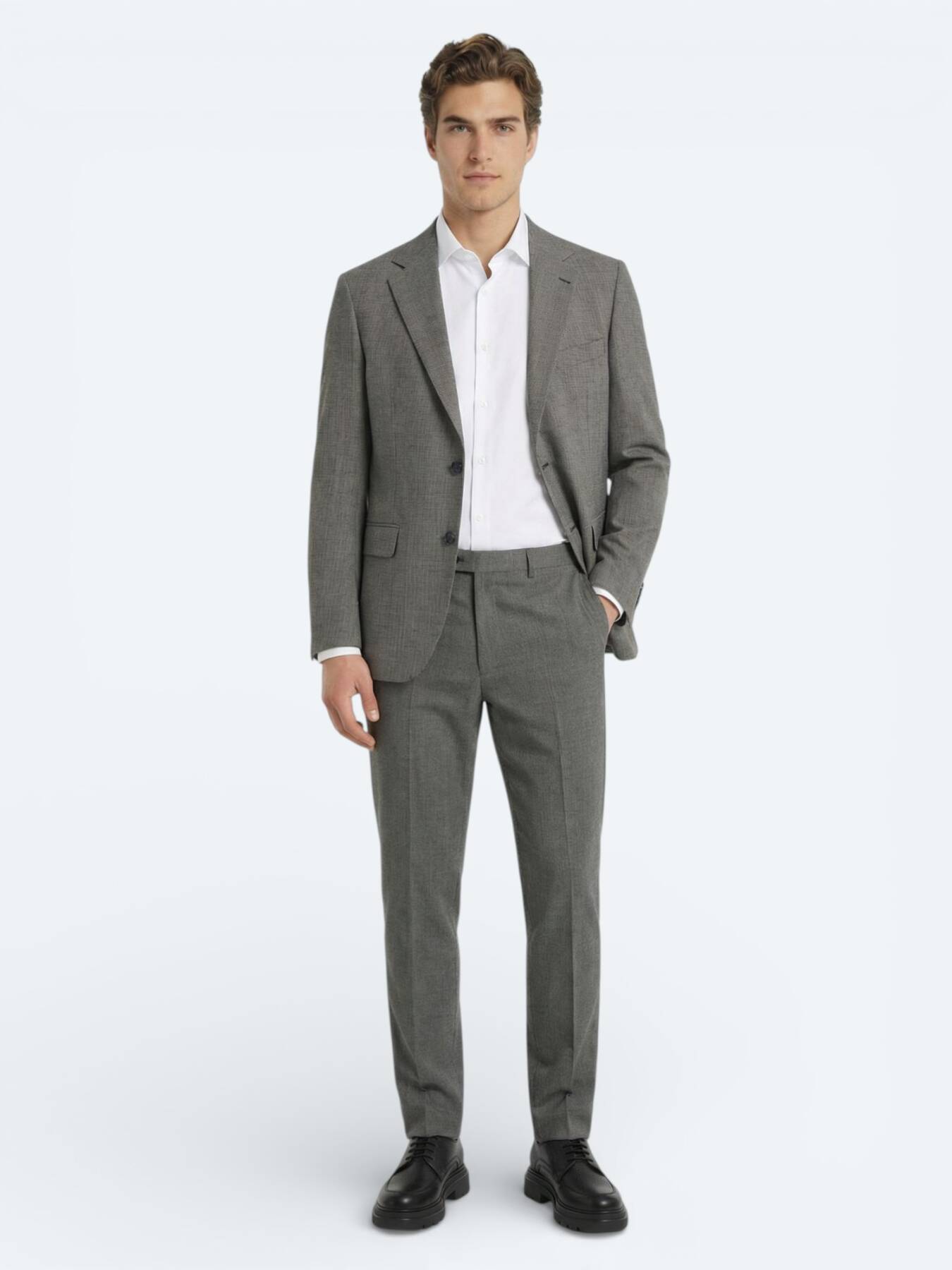 Notify me when its in stockan elegant light brown tone and Modern Fit fit, this wool-blend suit offers a sophisticated and powerful style. While its breathable fabric structure provides comfort all day long, it maintains its form for a long time thanks to its fully lined form.