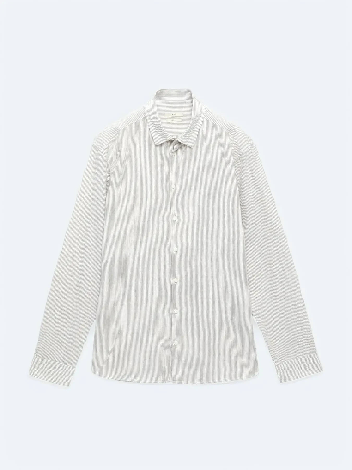 Light Brown Striped Regular Fit Weaving Casual Cotton Blended Shirt