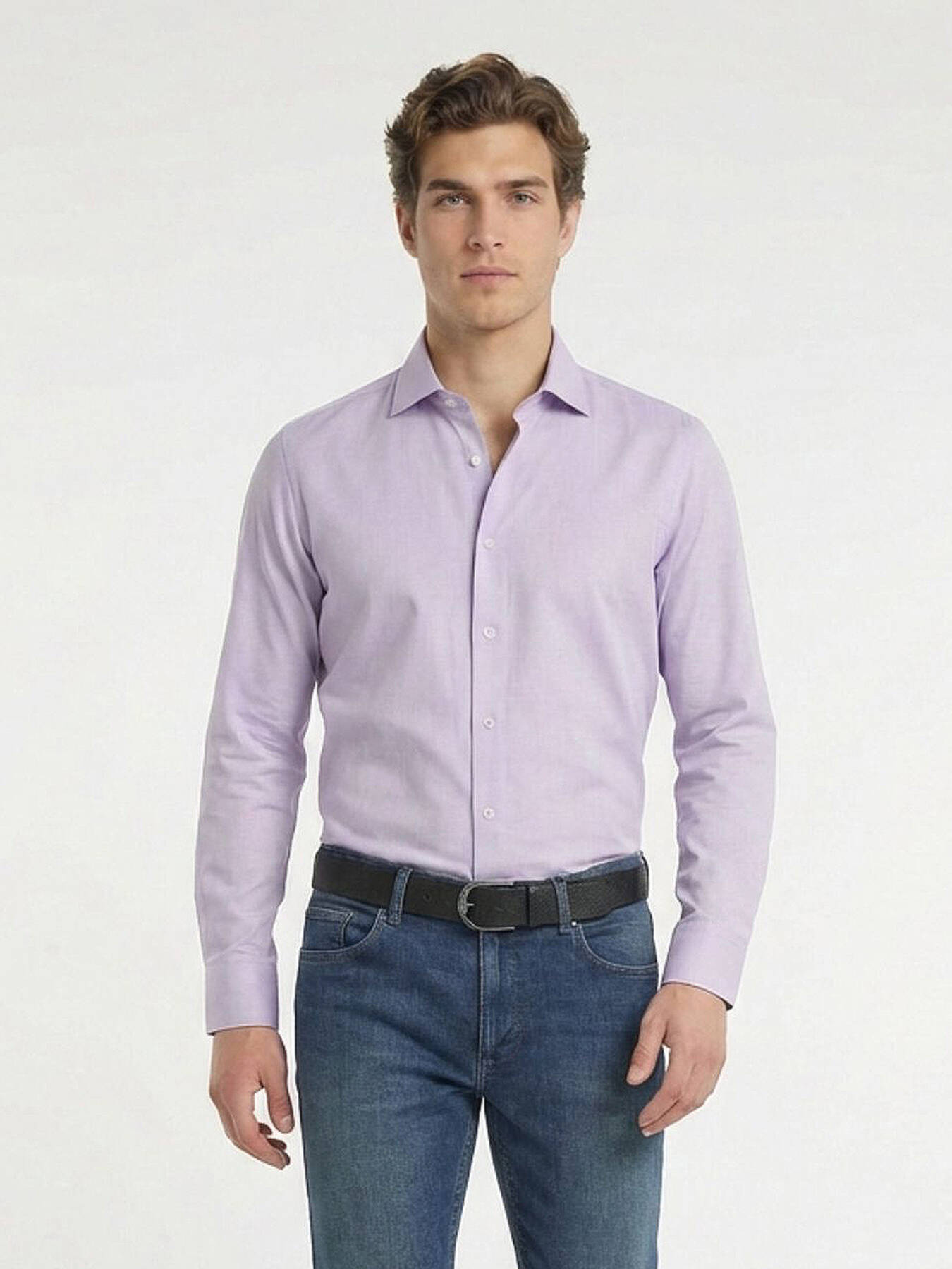 Lila Düz Regular Fit Dokuma Klasik Pamuk Karışımlı Gömlek