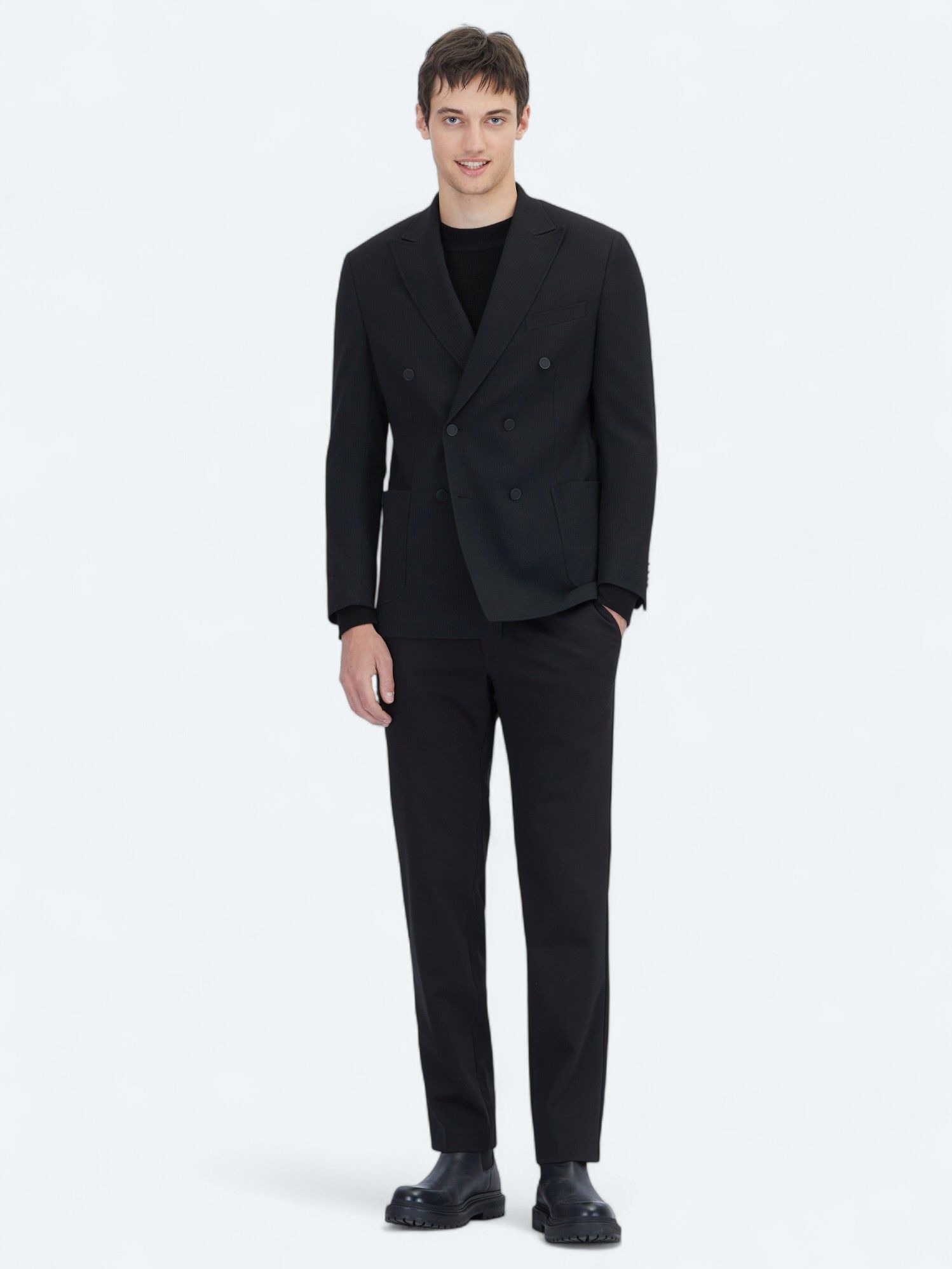 Siyah Teknik Casual Pamuk Karışımlı Pantolon