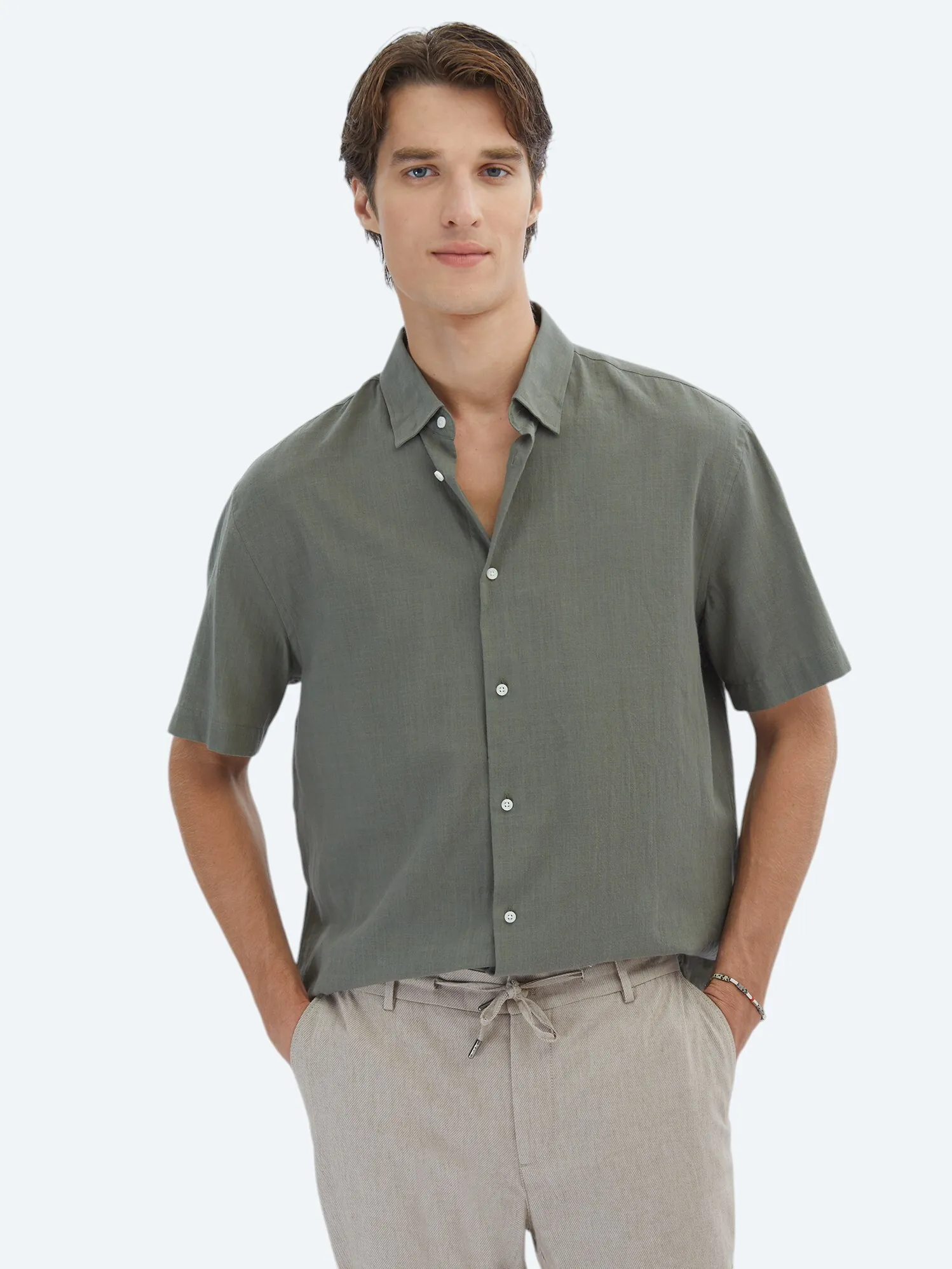 Haki Oversize Fit Dokuma Casual %100 Pamuk Gömlek