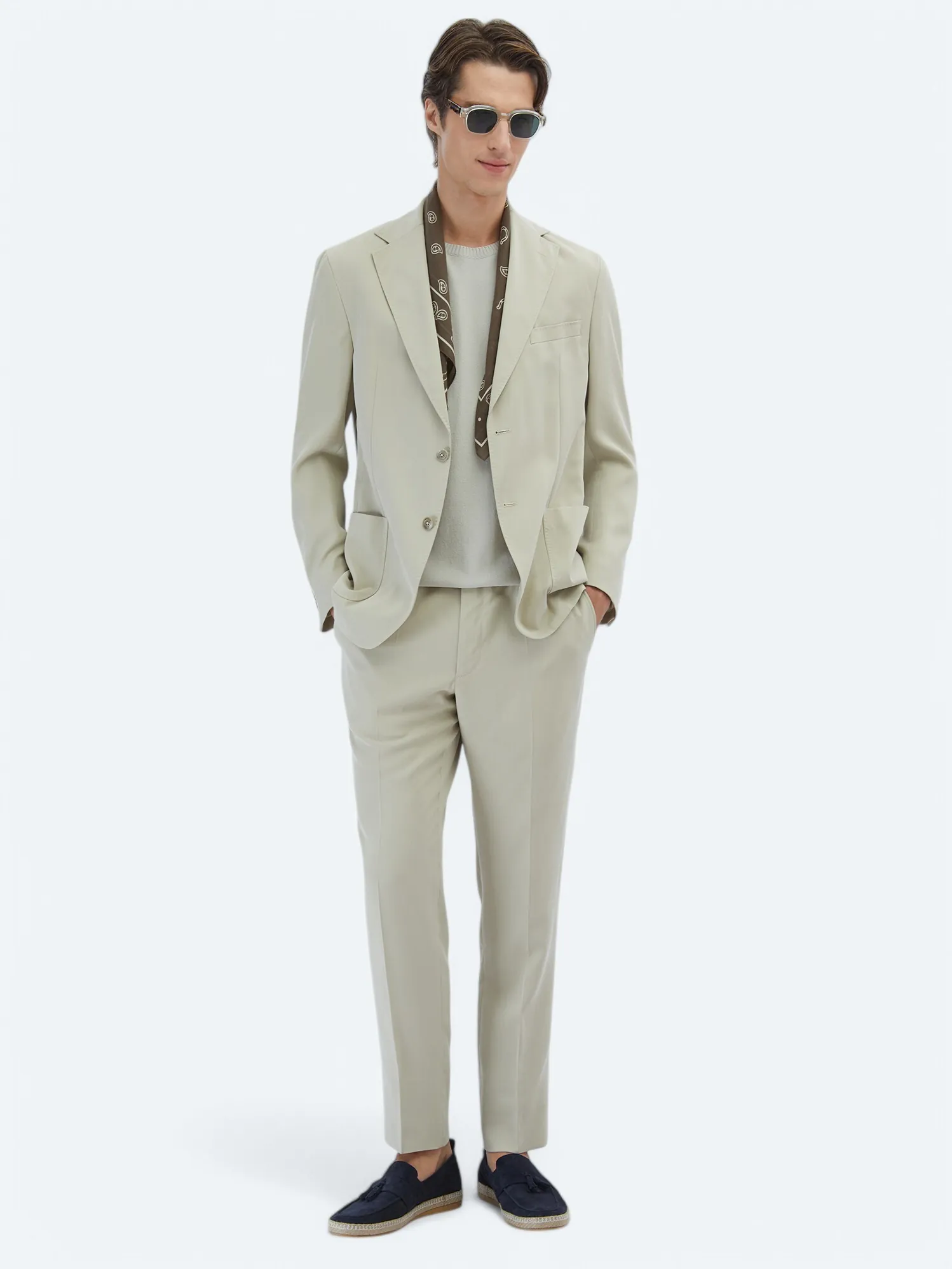 Bej Düz Modern Fit Takım Elbise