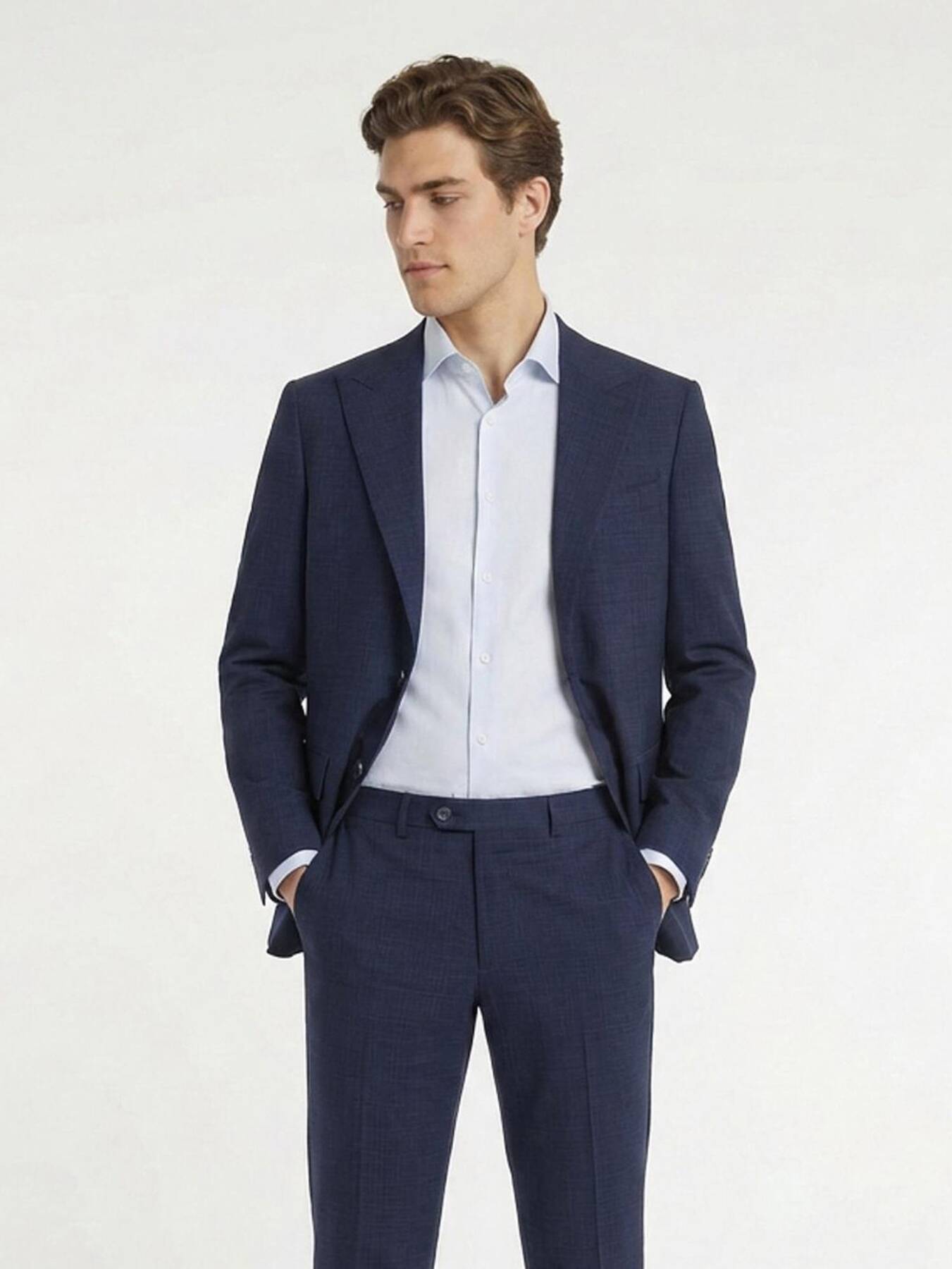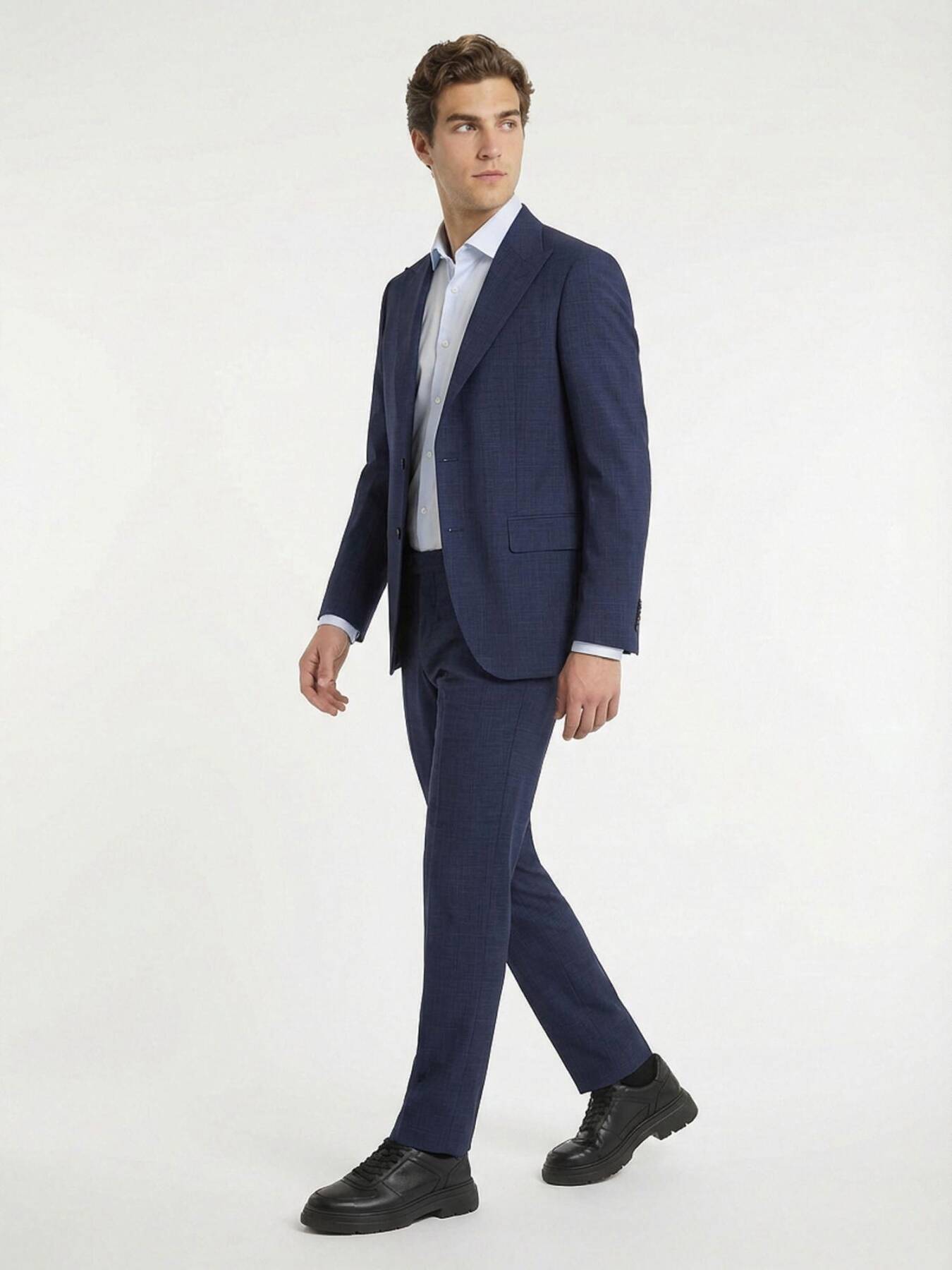 Gelince Haber VerMavi renk düz %100 yün modern fit erkek takım elbise, doğal yün kumaşıyla üstün nefes alabilirlik ve zarif dokunuş sunar. Modern fit kesimiyle vücuda dengeli bir uyum sağlar ve klasik siluetiyle hem iş ortamlarında hem özel davetlerde şık bir duruş yaratır. Takımın sade tasarımı farklı gömlek, kravat ve aksesuarlarla kolayca kombinlenir; gardırobunuzda zamansız ve çok yönlü bir temel parça görevi görür.