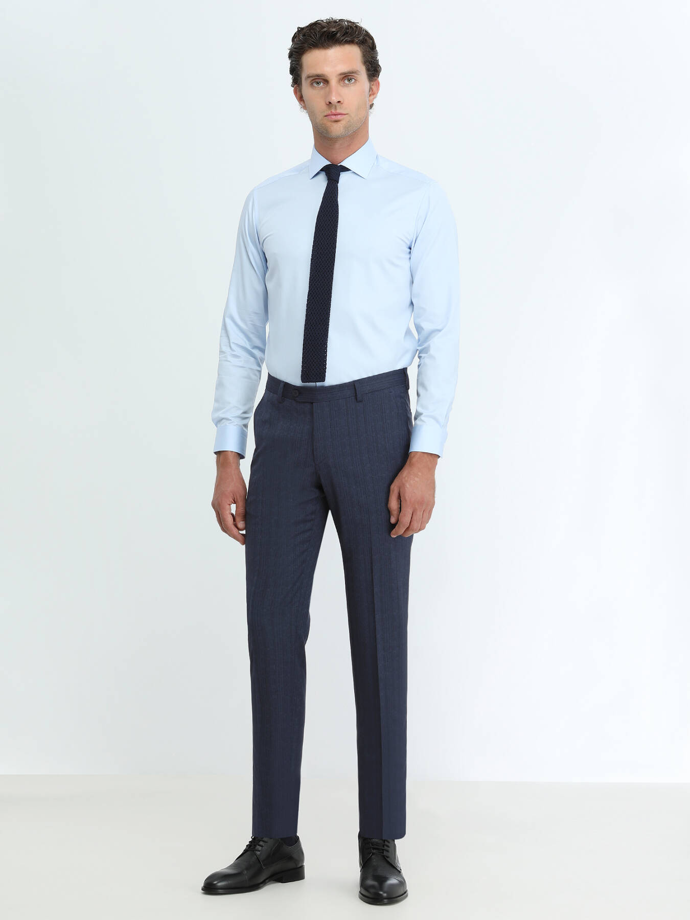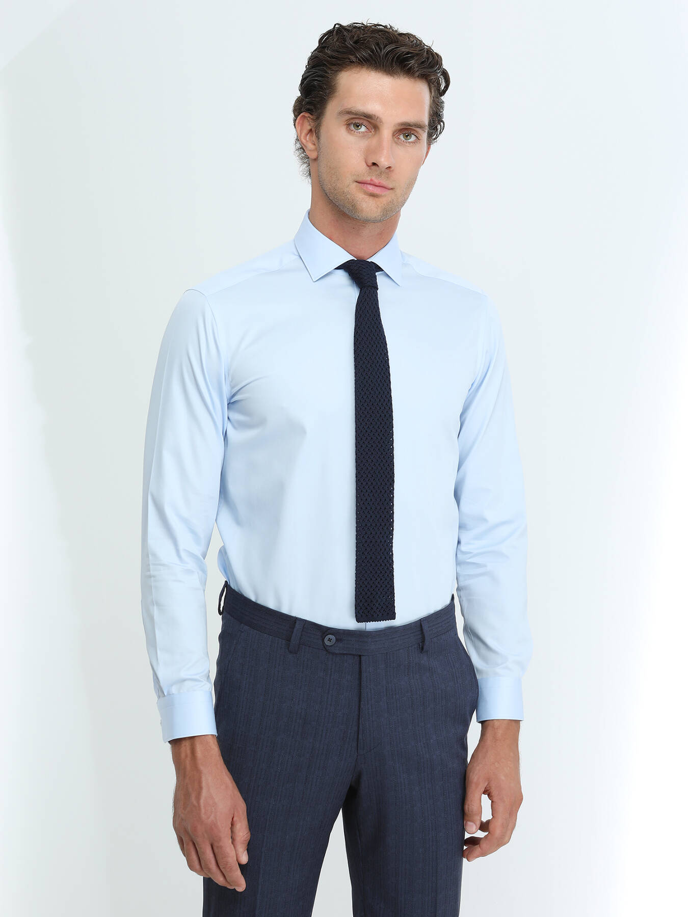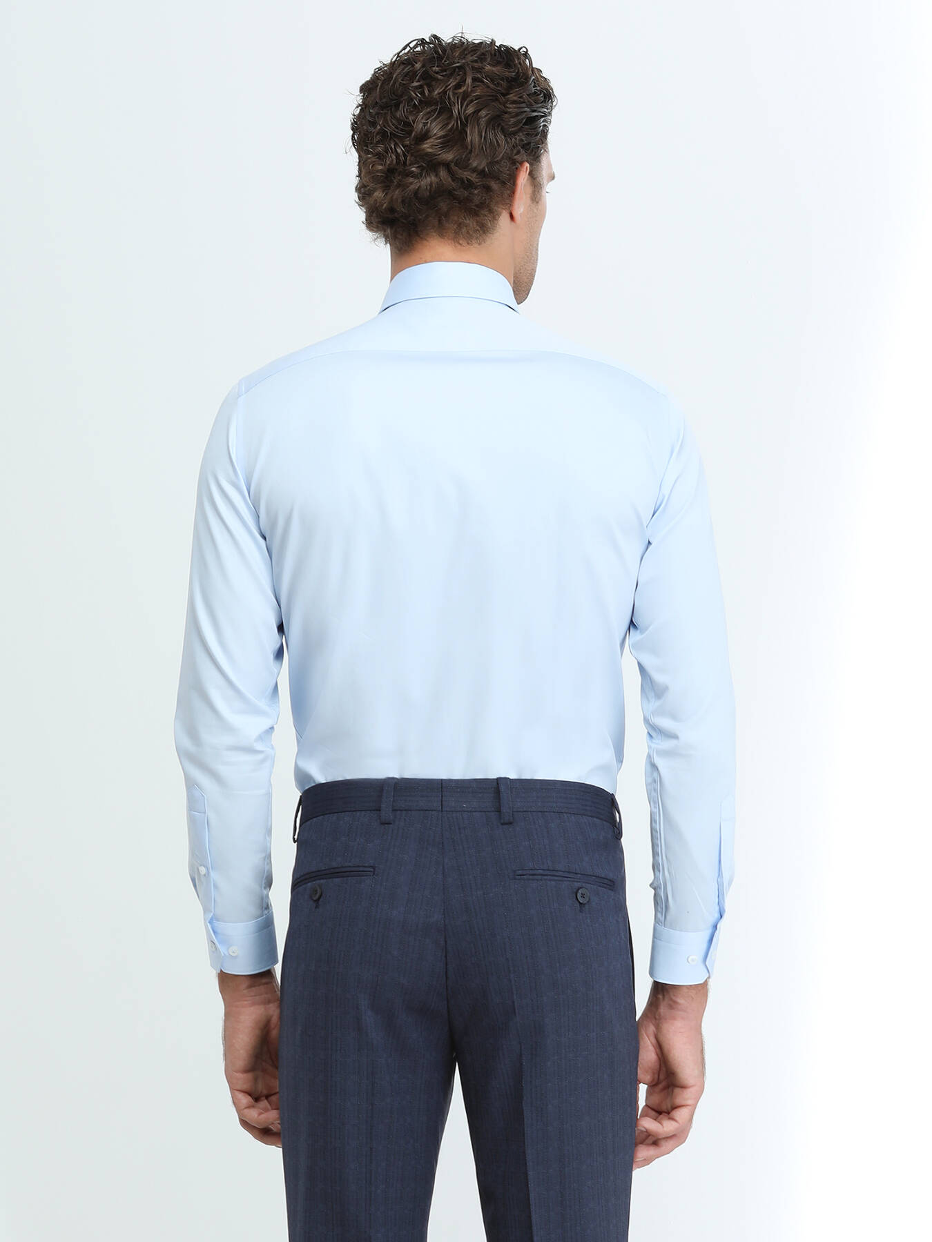 Mavi Düz Regular Fit Dokuma Klasik %100 Pamuk Gömlek