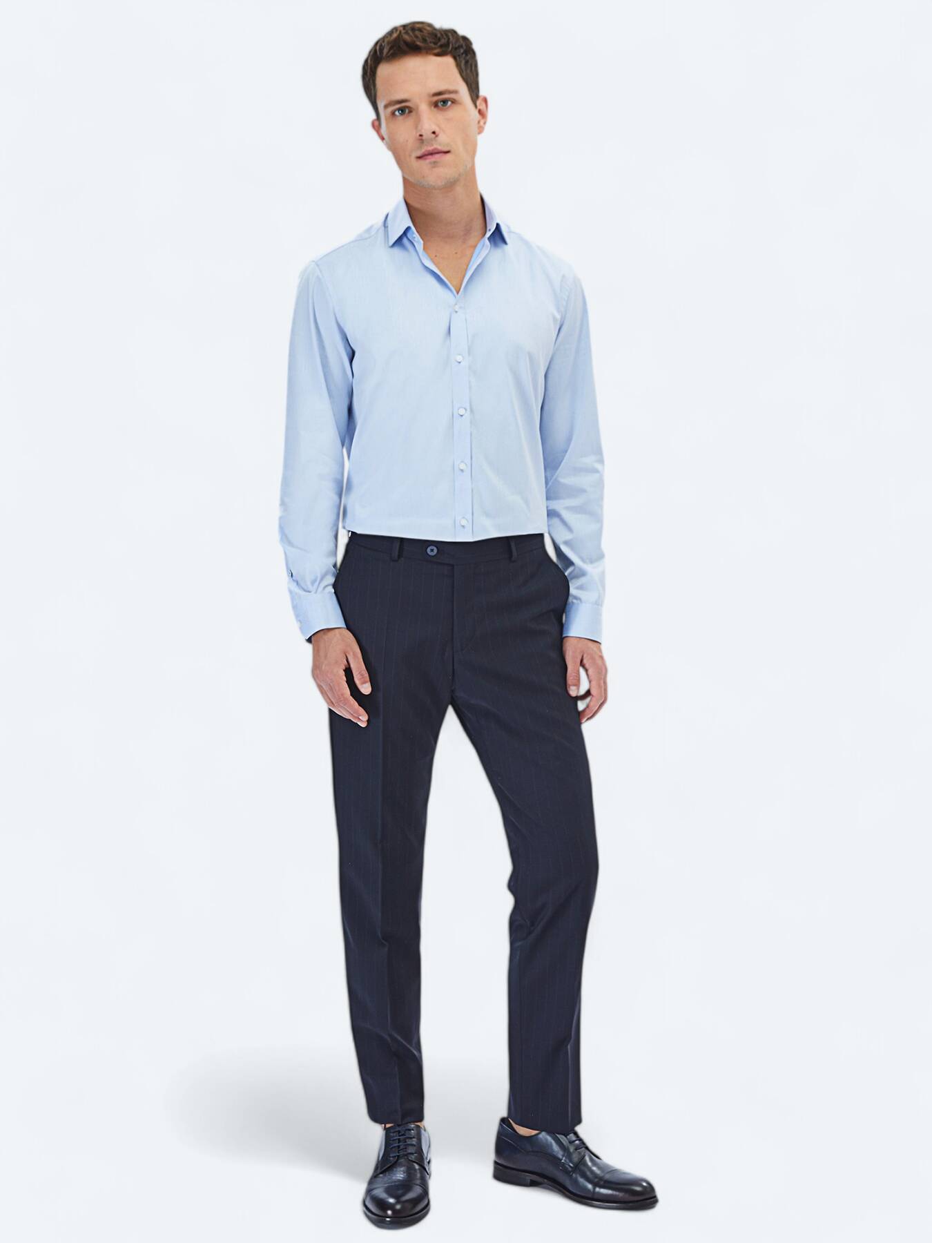 Regular fit kesimi, vücuda tam oturmadan şık bir duruş sağlar ve hareket özgürlüğü sunar. Mavi tonunun verdiği taze ve duru hava ile hem ofis stilinde hem de günlük kombinlerde rahatlıkla tercih edilebilir.