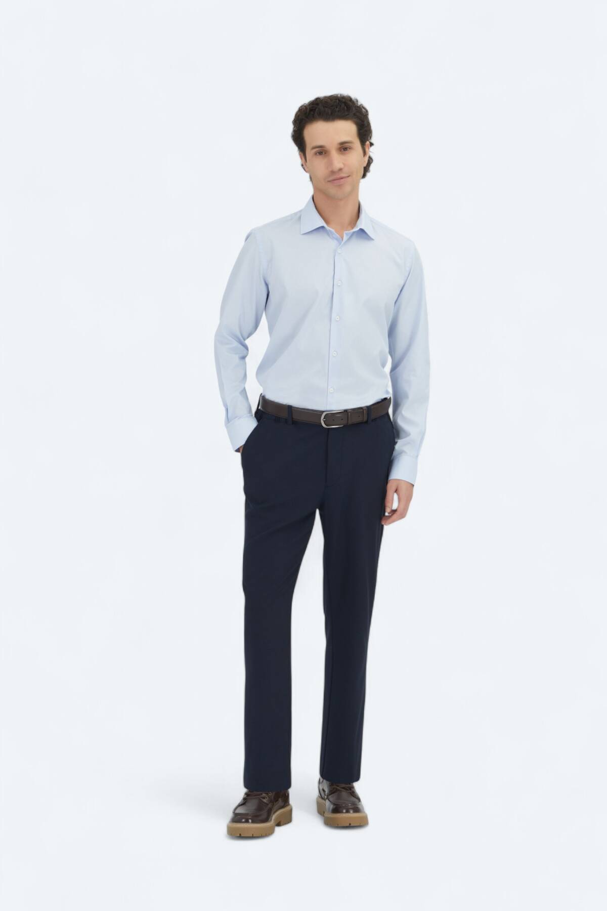 Medium Blue Regular Fit Weaving Classical Cotton Blended Shirt - 1