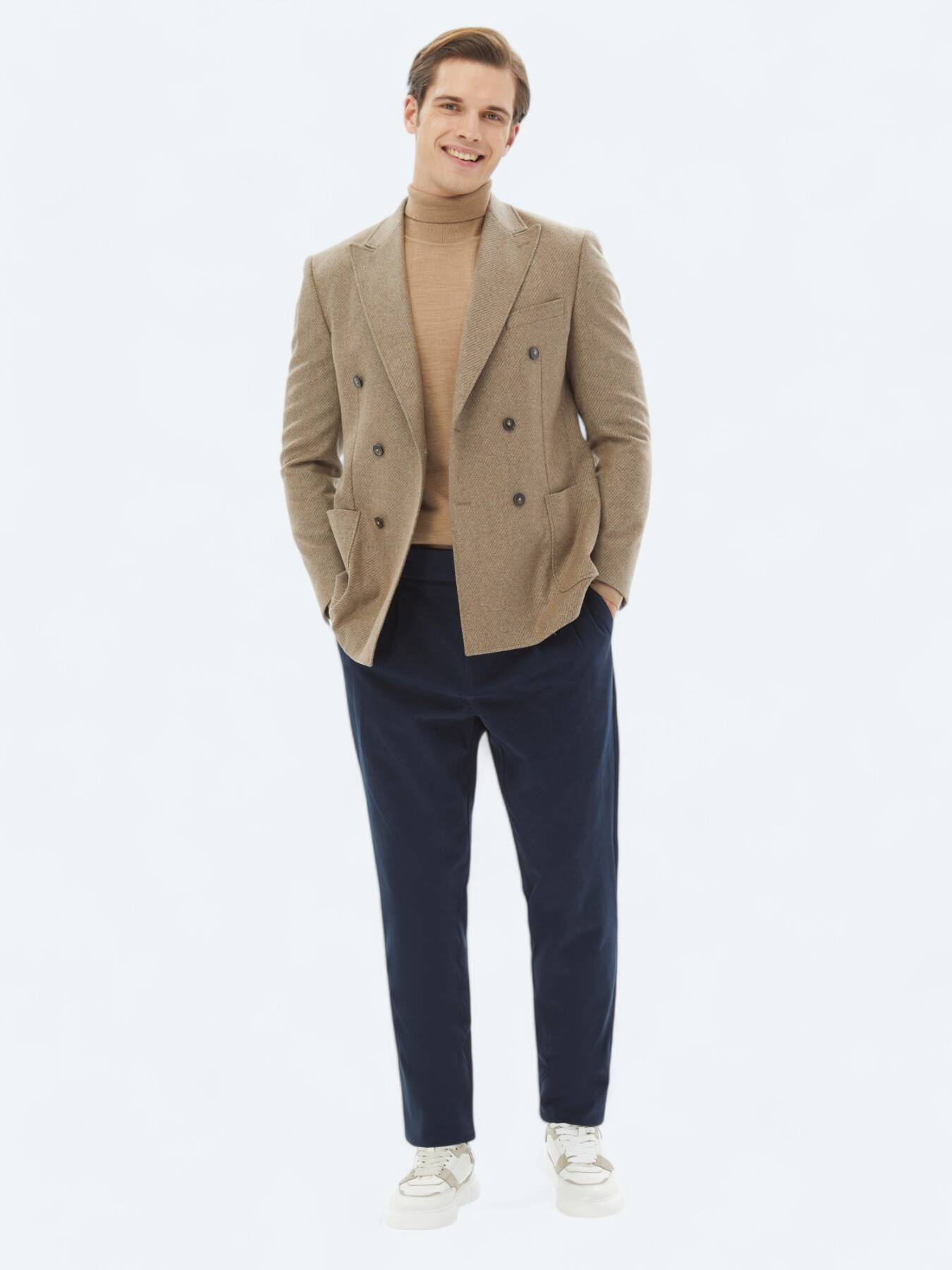 Model: Height: 188 cm, Chest: 100 cm, Waist: 79 cm, Hips: 96 cm, Size: 48