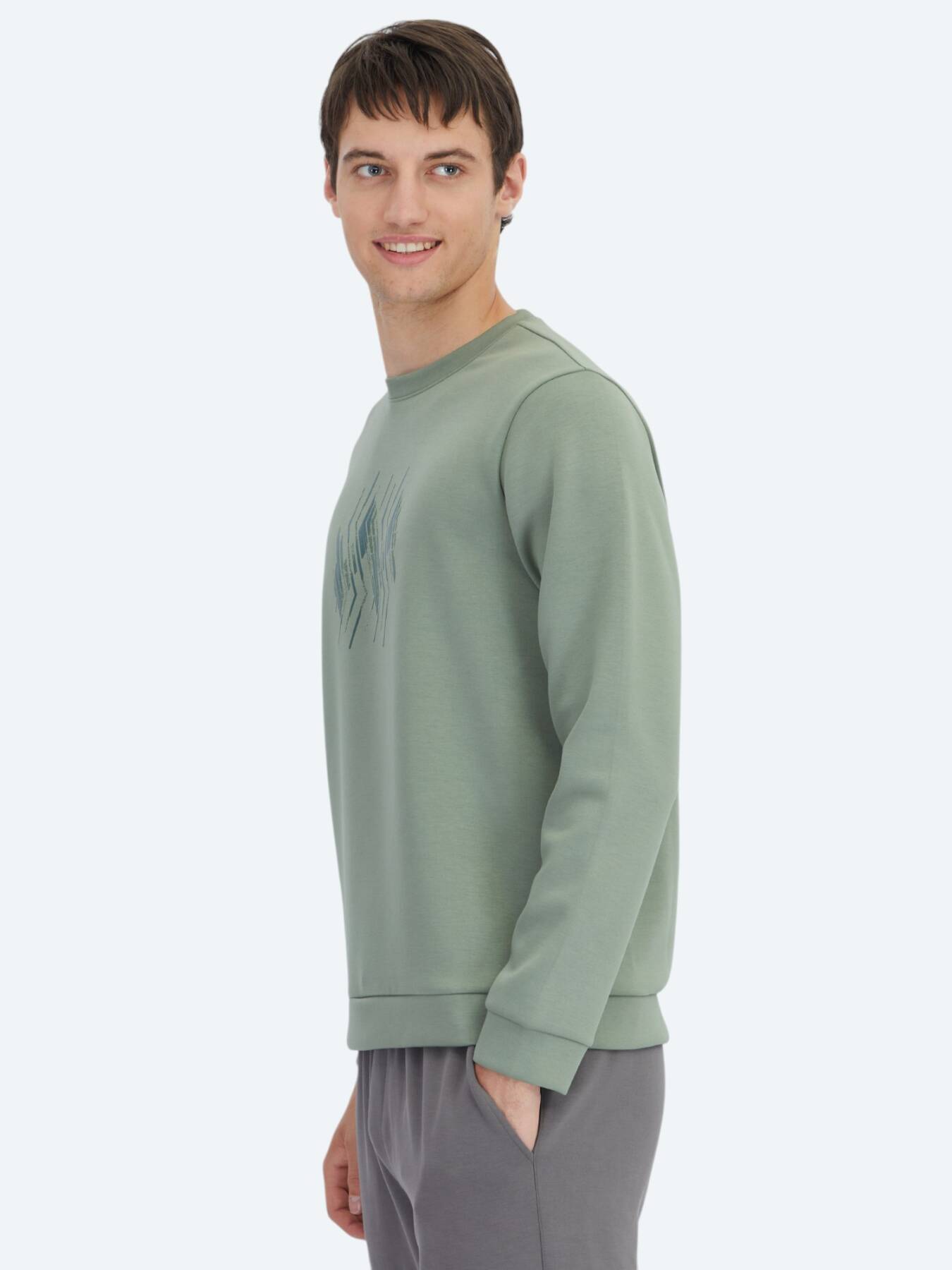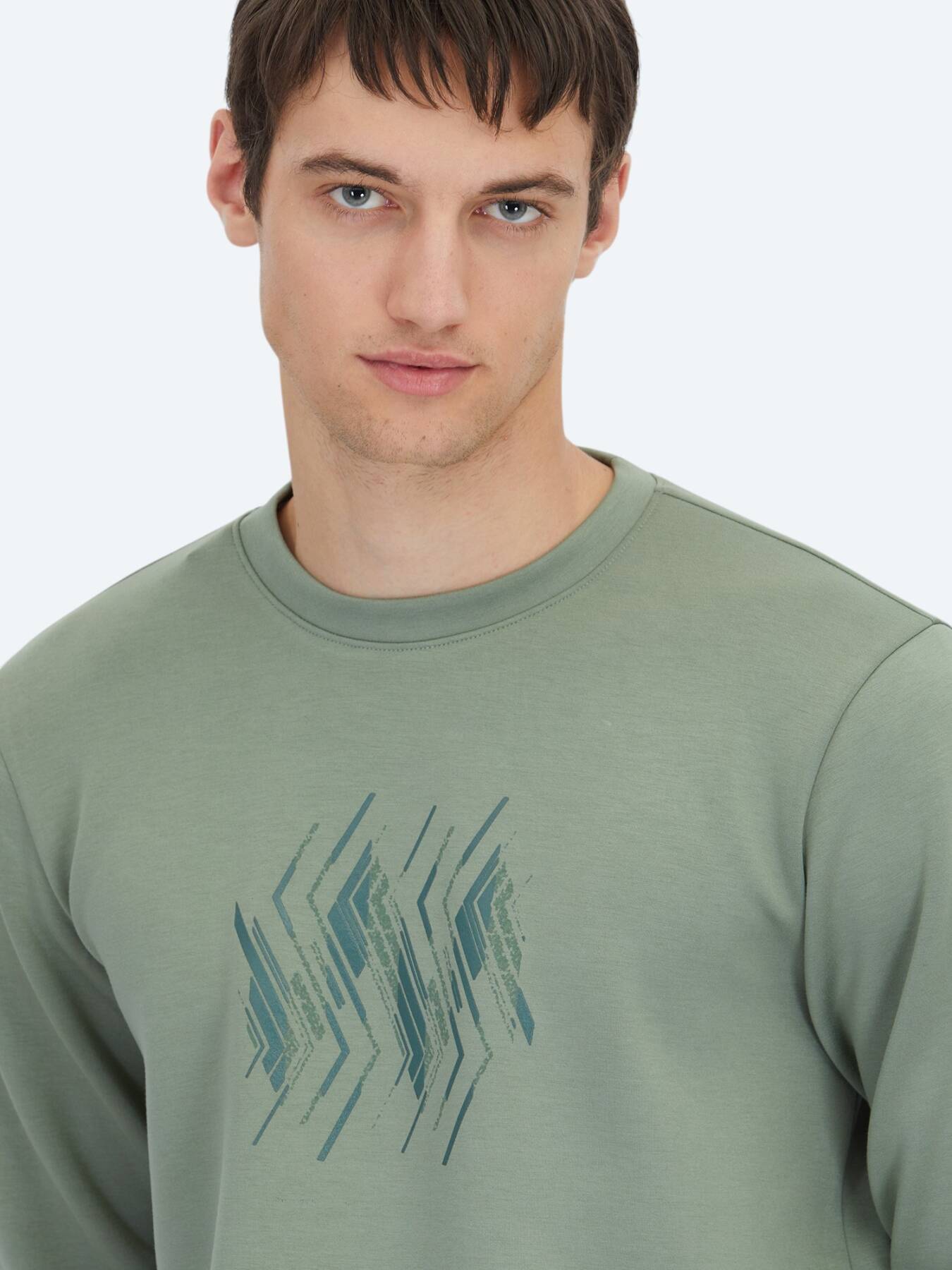 Mint Crew Neck Patterned Sweatshirt