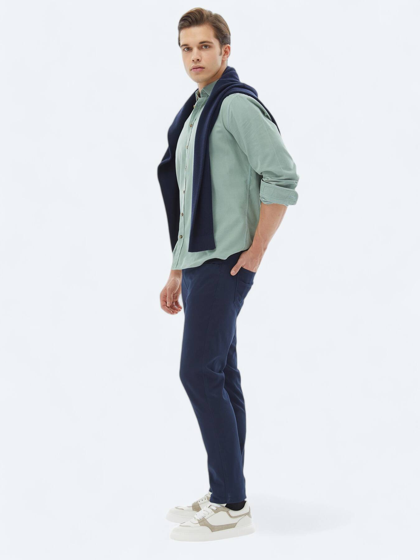 Mint Fitilli Regular Fit Uzun Dokuma Kadife Casual %100 Pamuk Gömlek