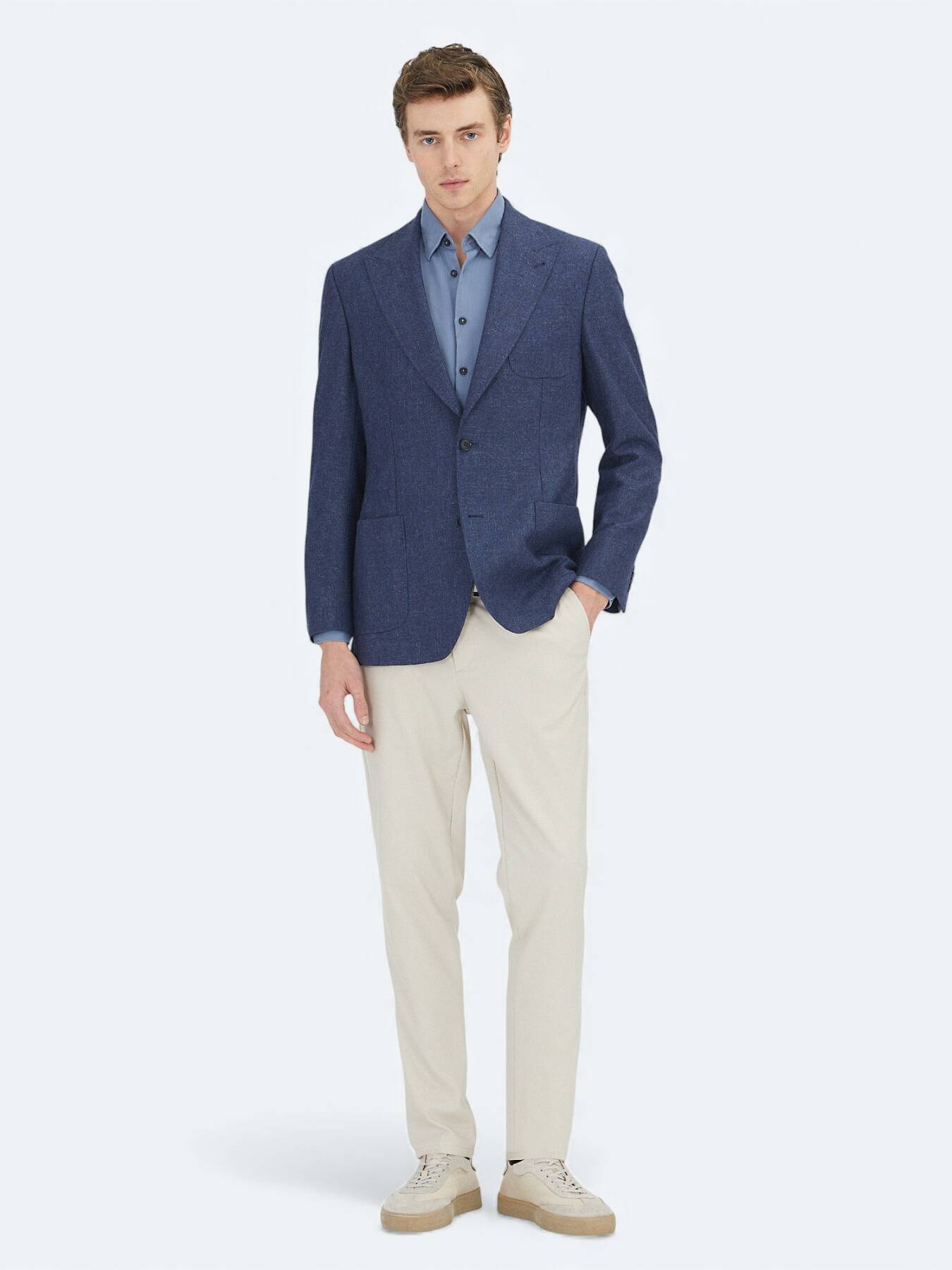 Model: Height: 187 cm, Chest: 98 cm, Waist: 78 cm, Hips: 96 cm, Size: 48