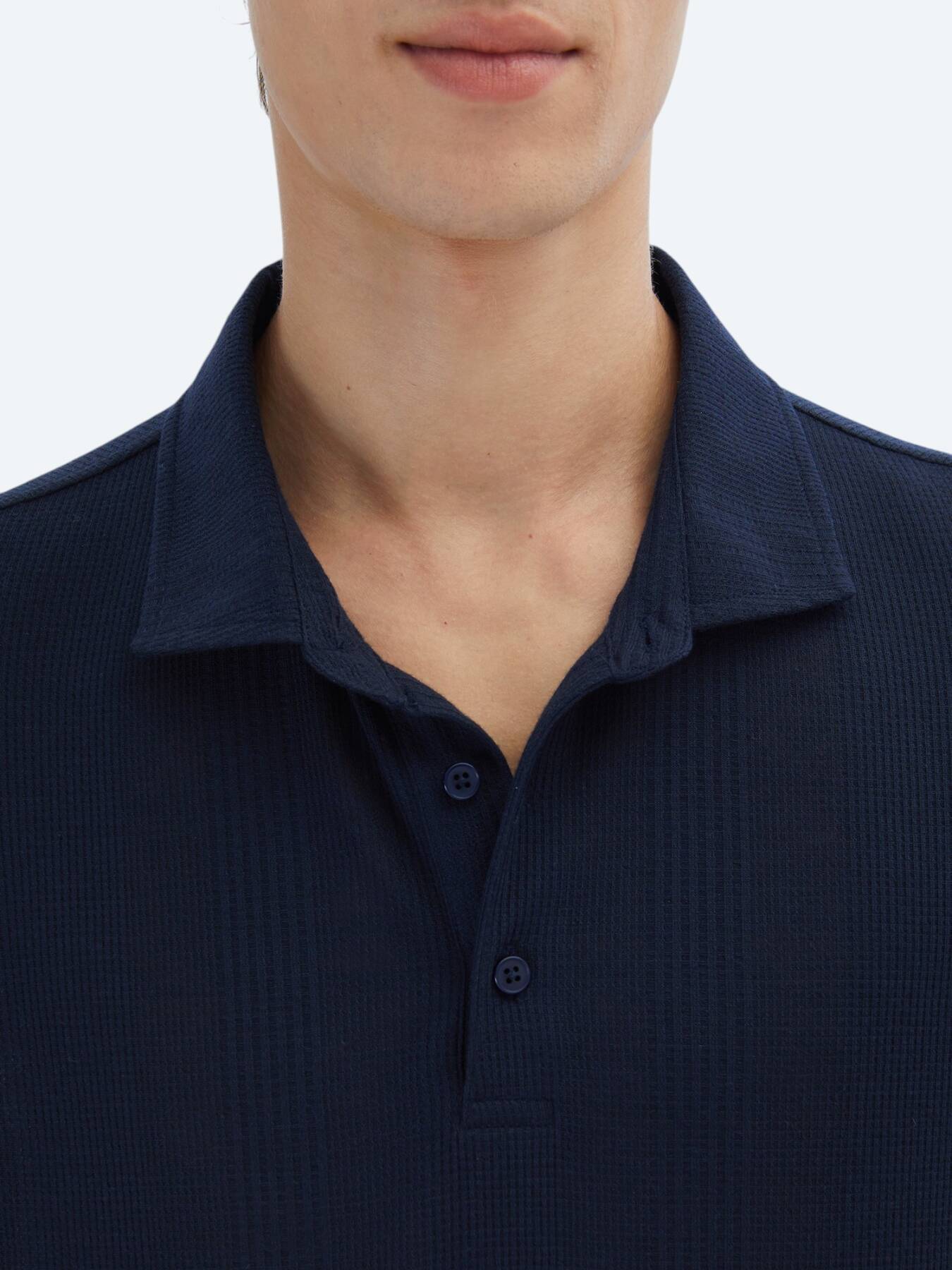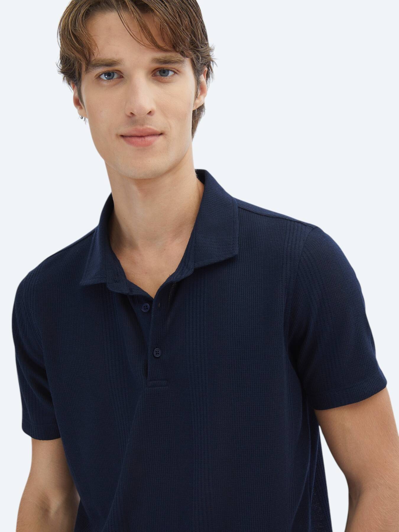 Notify me when its in stockThis polo neck t-shirt, which attracts attention with its soft textured fabric and minimal style, offers a simple but effective look.