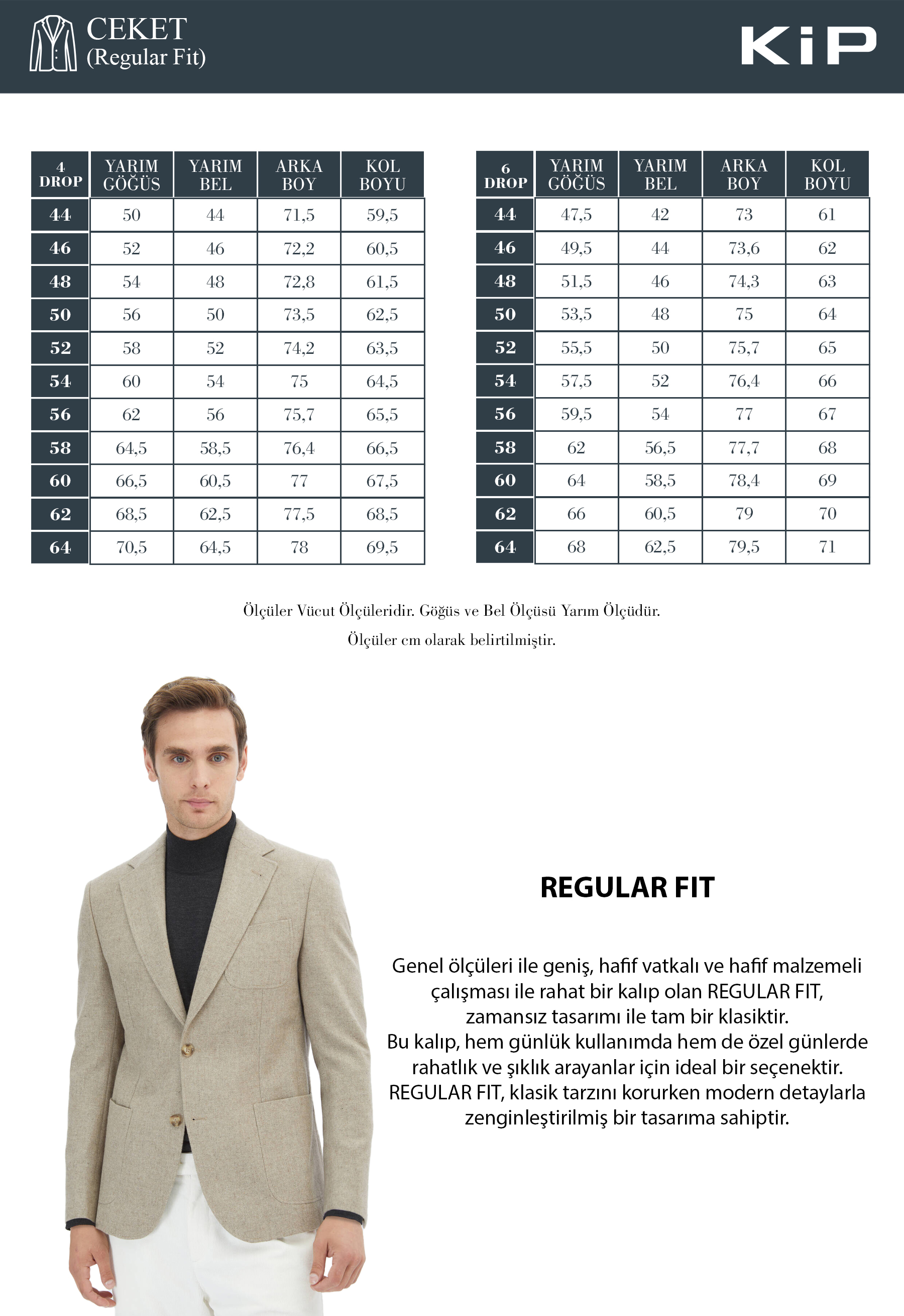 Model: Height: 185 cm, Chest: 98 cm, Waist: 78 cm, Hips: 96 cm, Size: 48