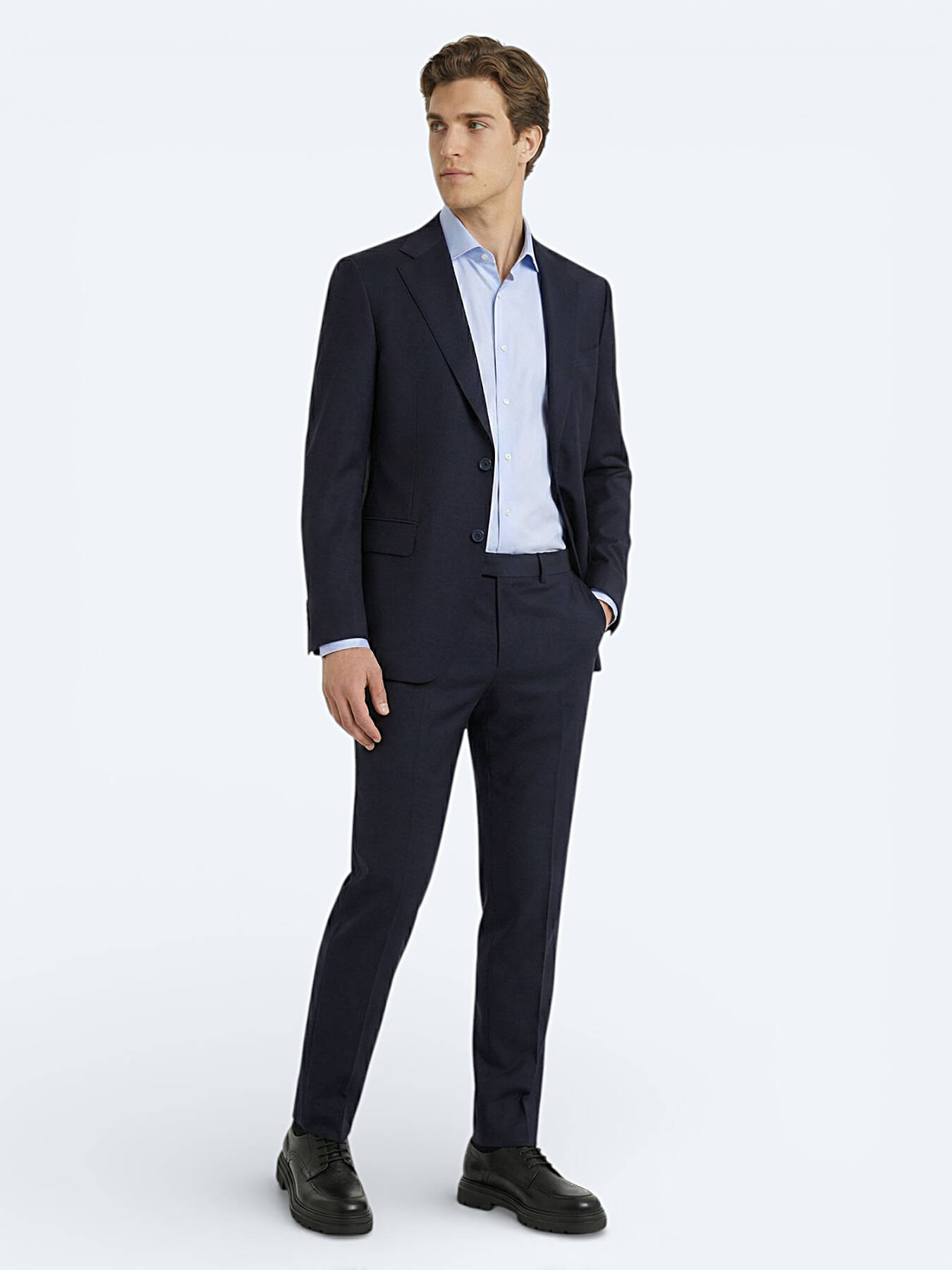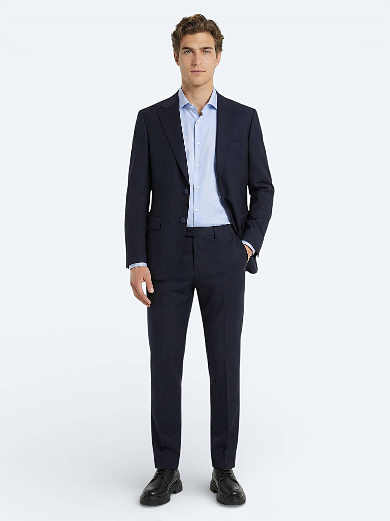 Navy Blue Plain Modern Fit Wool Blended Suit