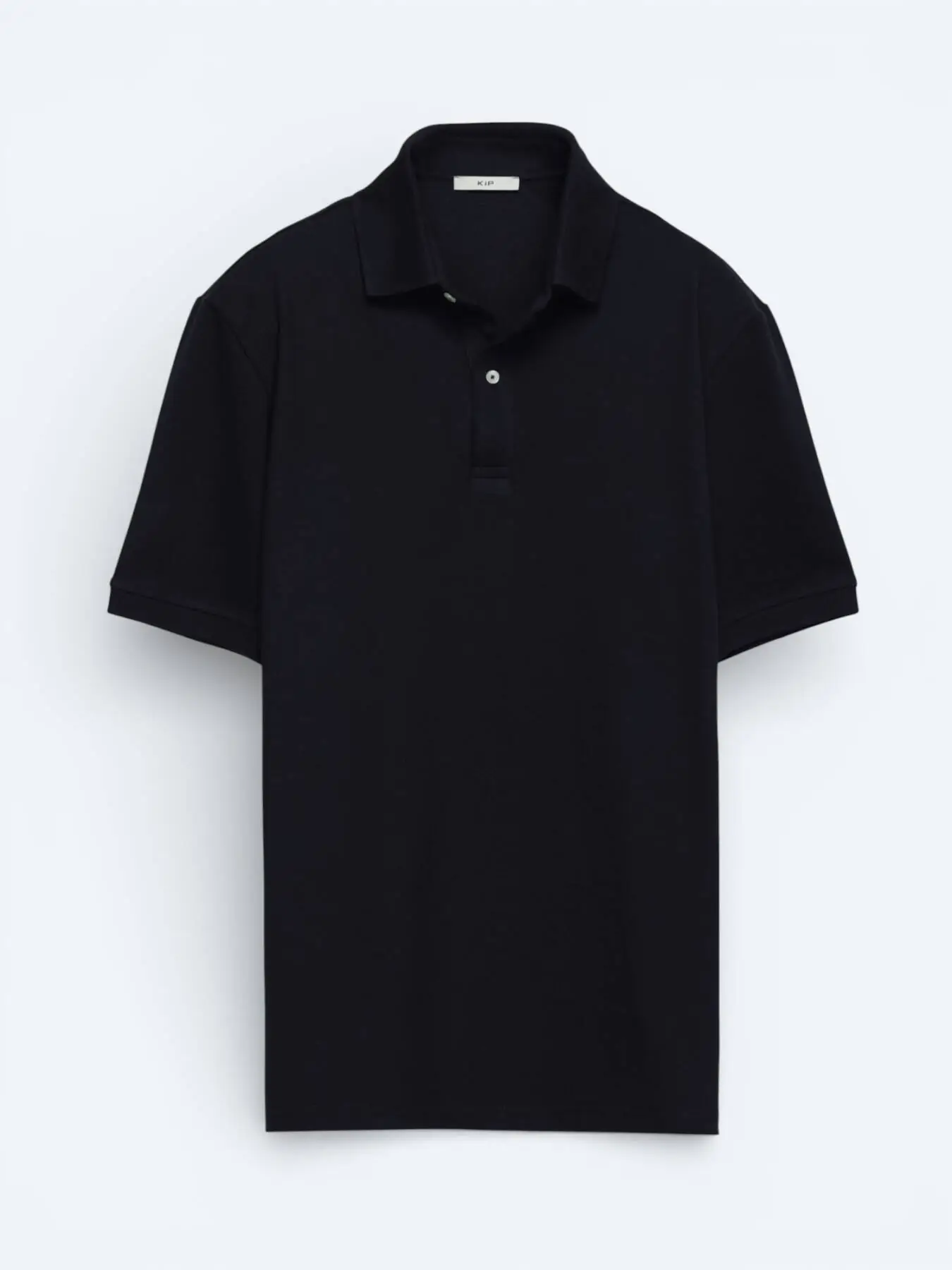 Navy Blue Plain Polo Neck Cotton Blended T-Shirt