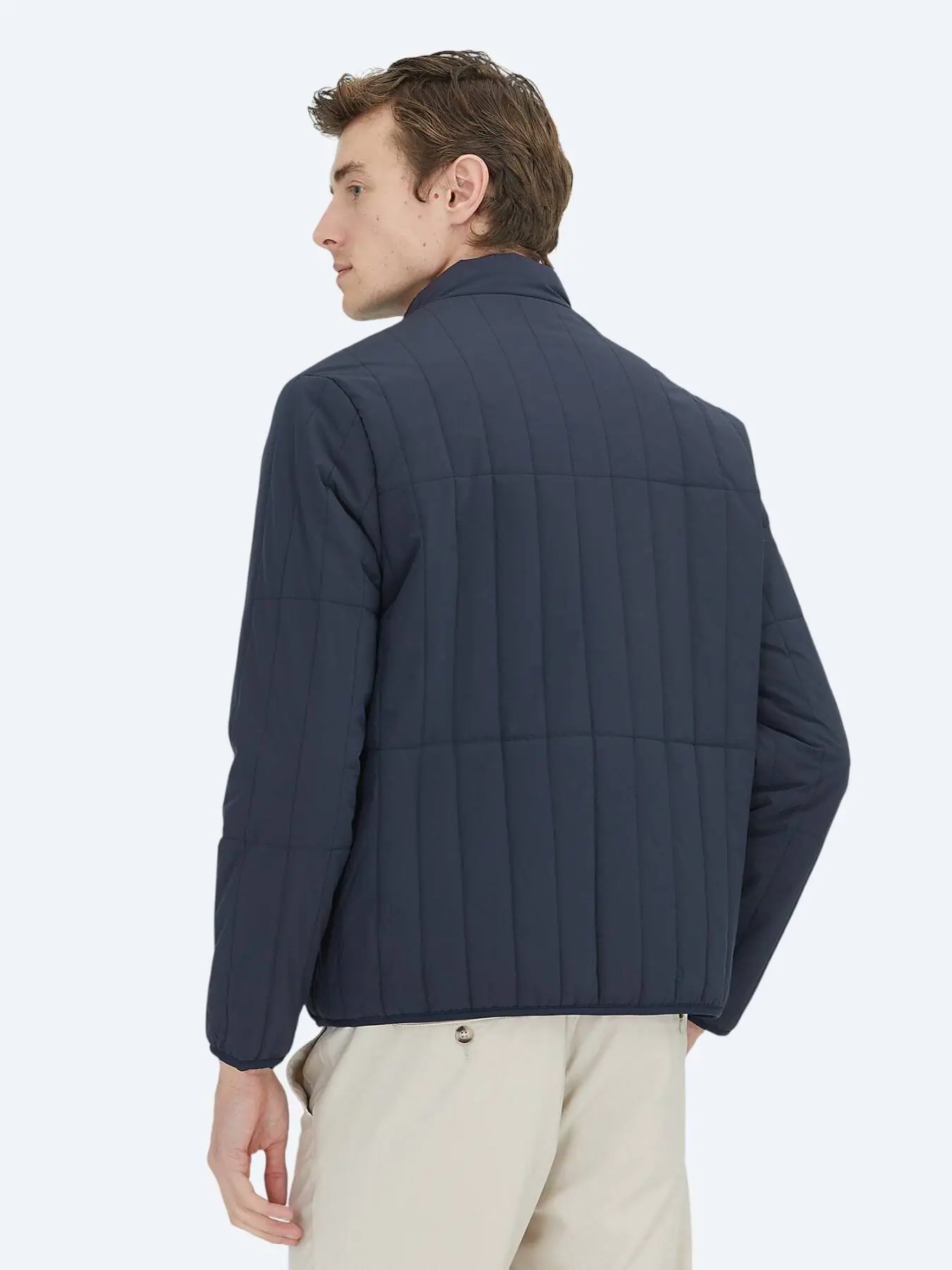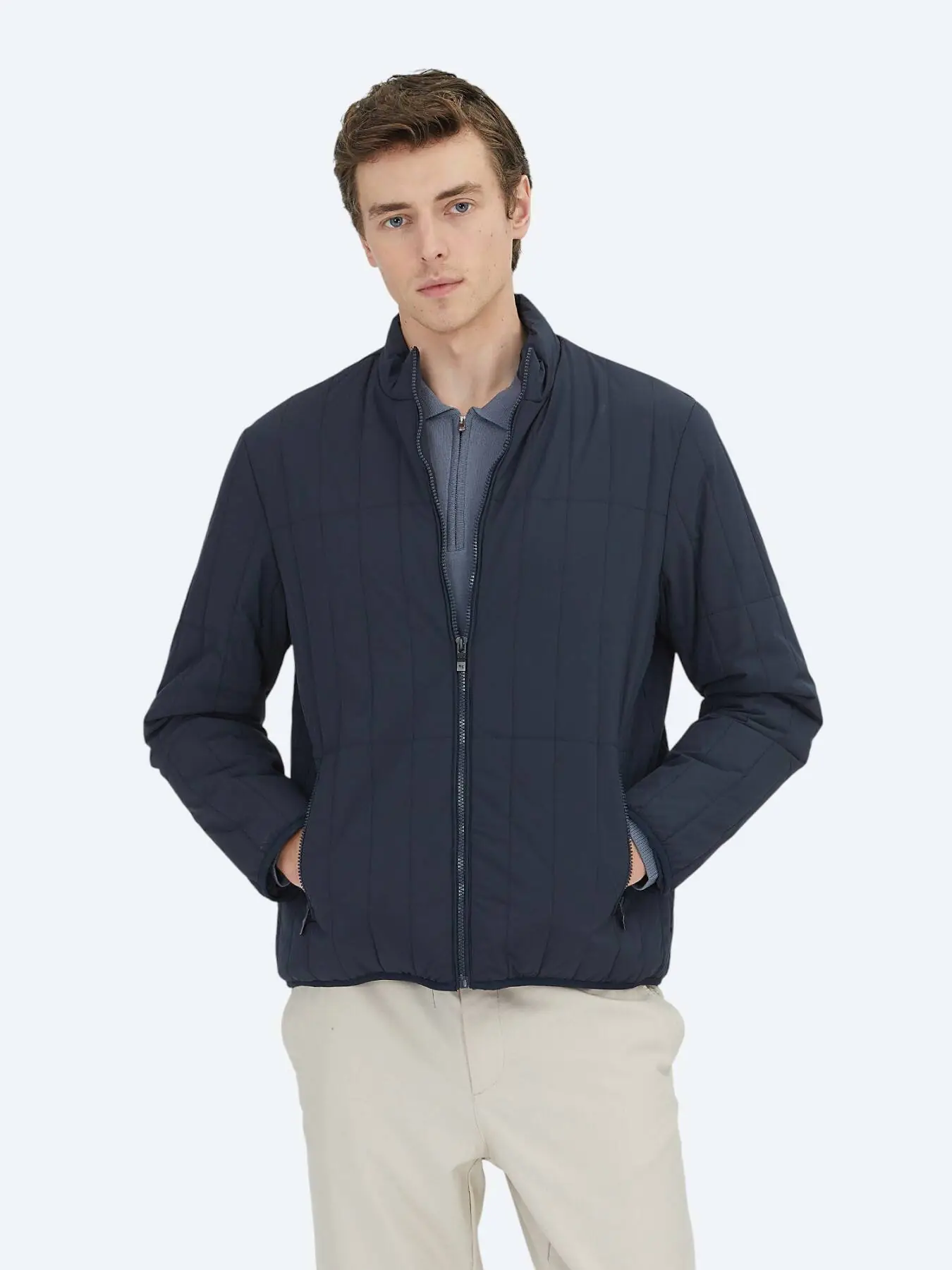 Navy Blue Regular Fit Turtleneck Casual Weaving Coat