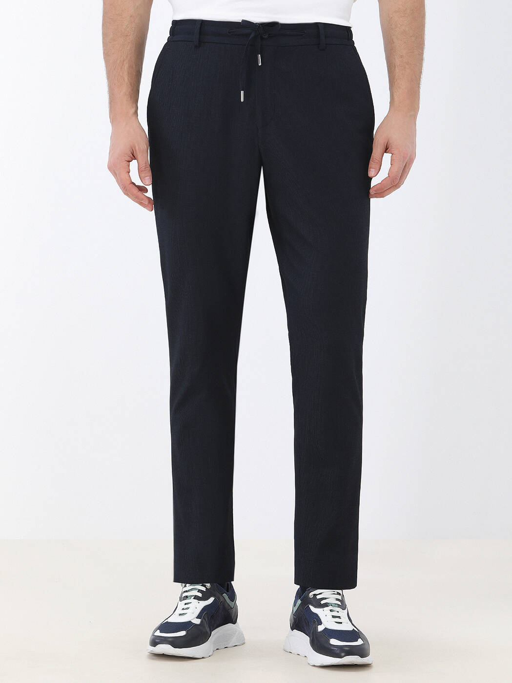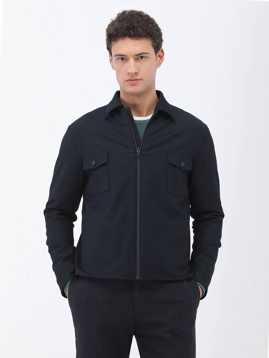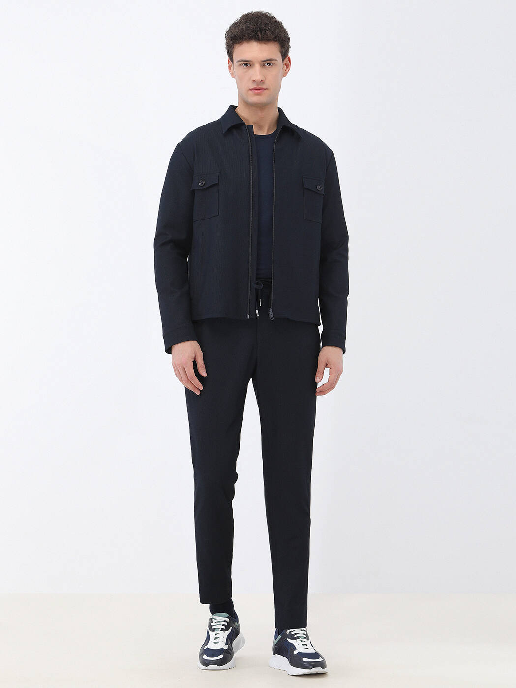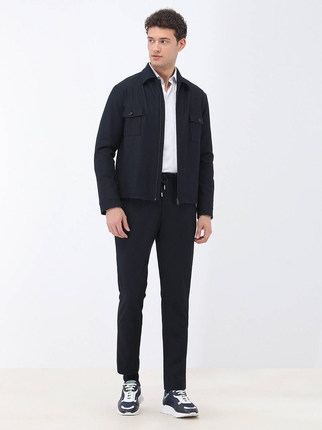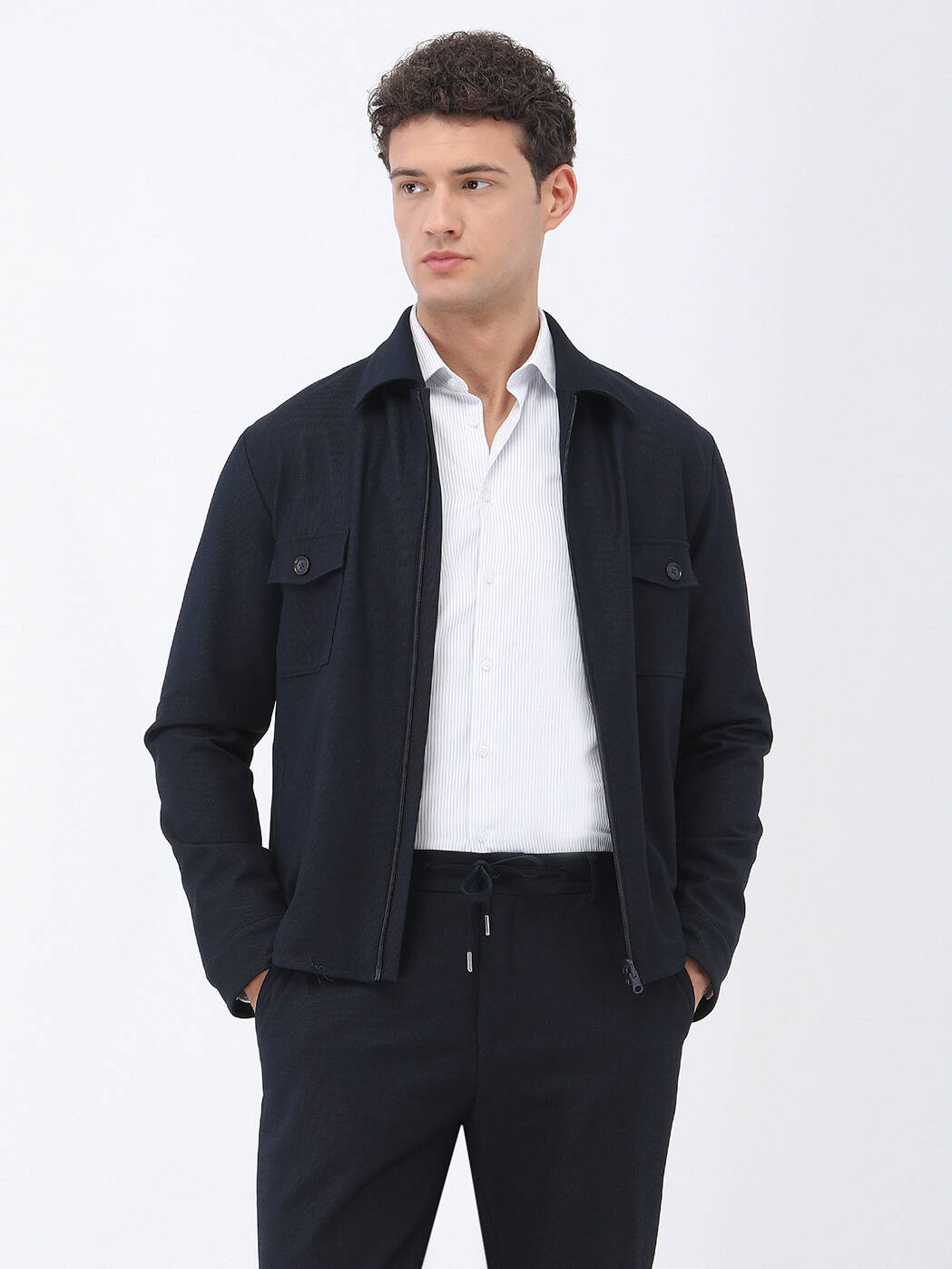 Notify me when its in stock A modern fit, navy blue new generation suit designed with cotton blended fabric. Sporty look with butterfly collar, chest-level buttoned pocket and zipper detail. All-day comfort with a lightened shoulder form. Elegance in any environment at any time by combining a jacket or trousers with different pieces.