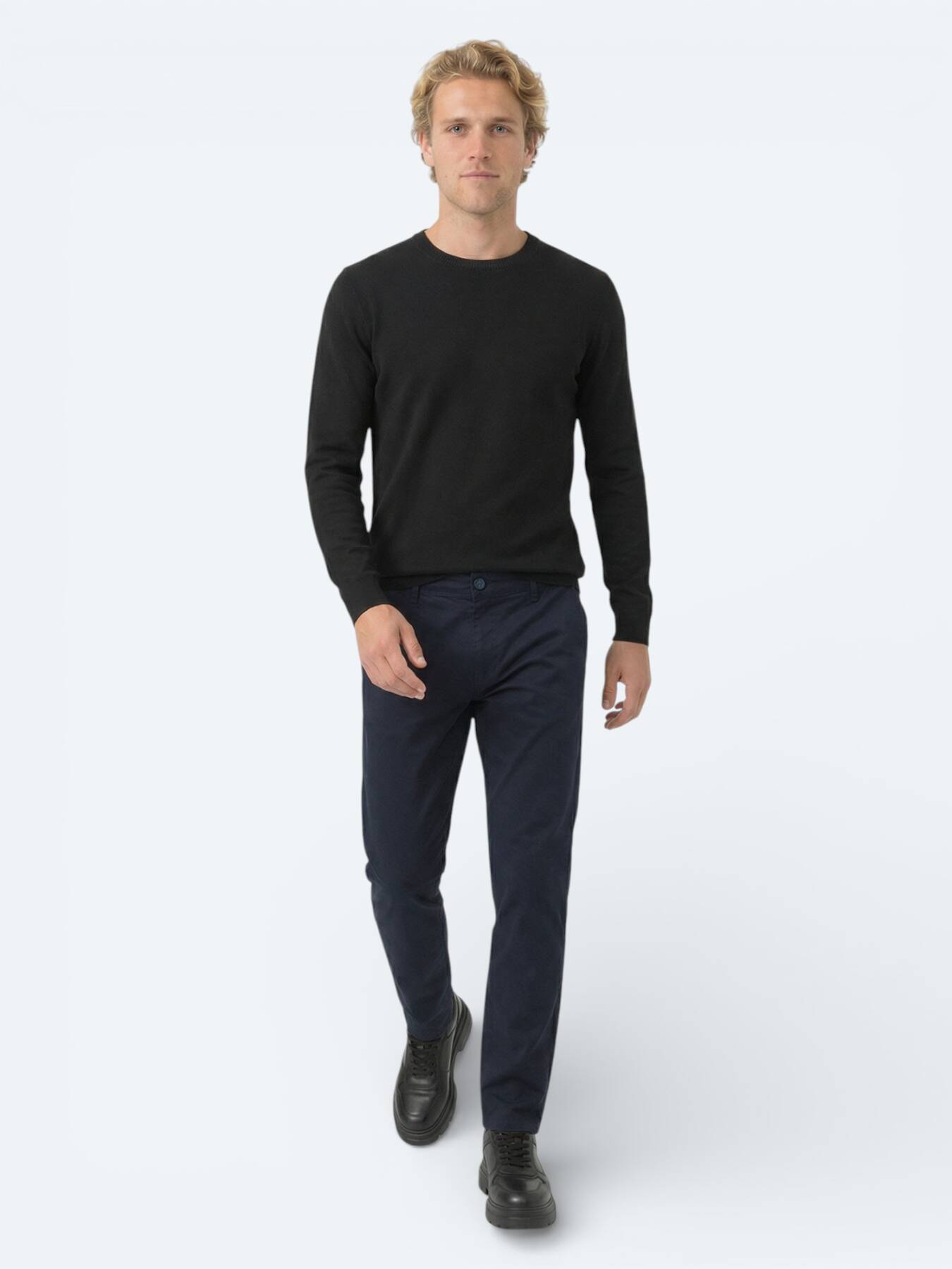 Notify me when its in stockŞehrin temposuna uyum sağlayan modern fit kesimiyle bu lacivert chino, ofis şıklığını hafta sonu konforuyla kusursuzca birleştiriyor. Bisiklet yaka triko ve sneakerlarla tamamlandığında çabasız bir karizma sunan bu parça, yüksek kaliteli dokusuyla gün boyu özgür hissetmenizi sağlıyor. Stilinize dinamik ve rafine bir dokunuş katmak için KİP kalitesini hemen keşfedin.