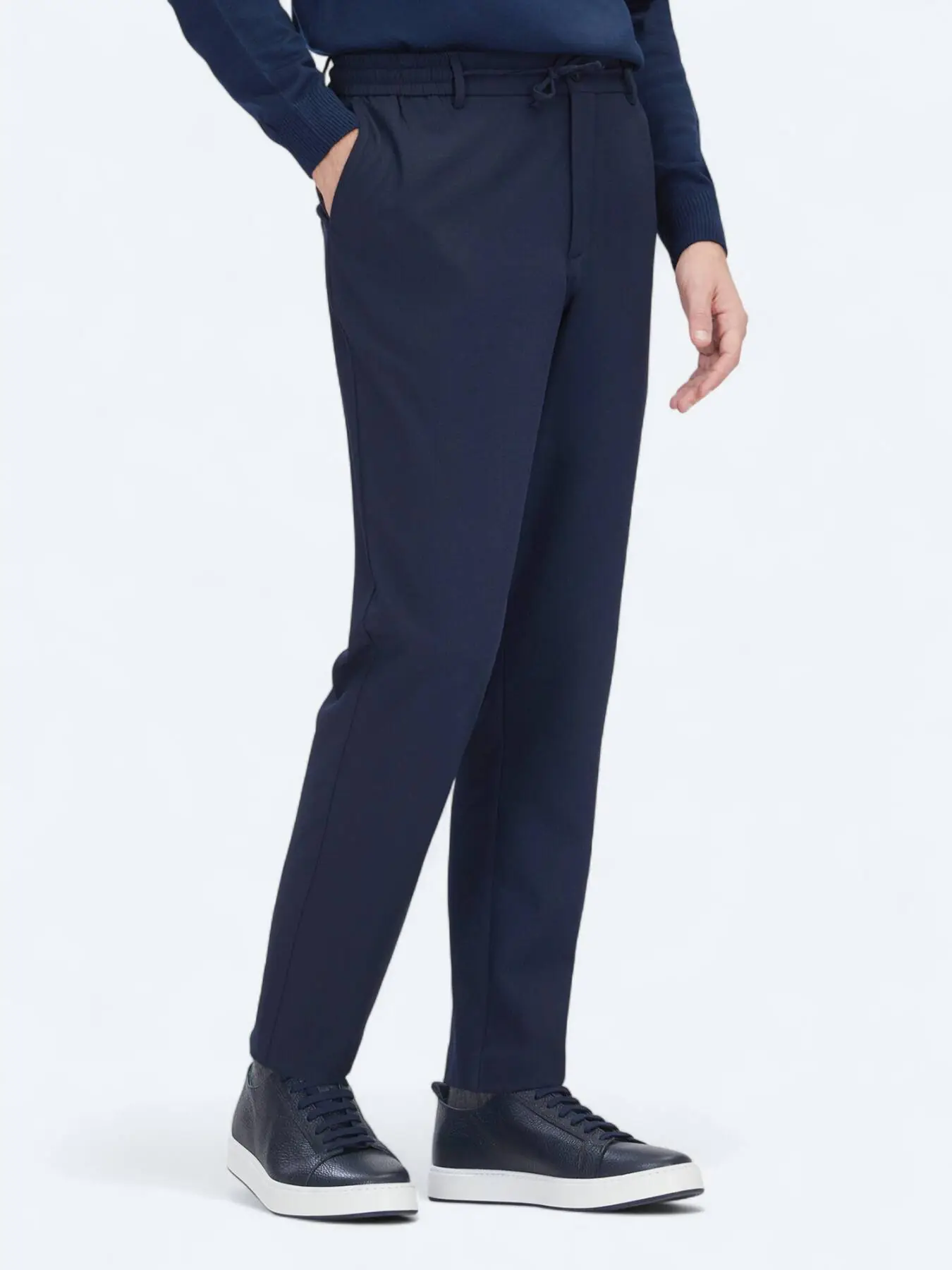 Navy Blue Weaving Jogging Fit Casual Trousers