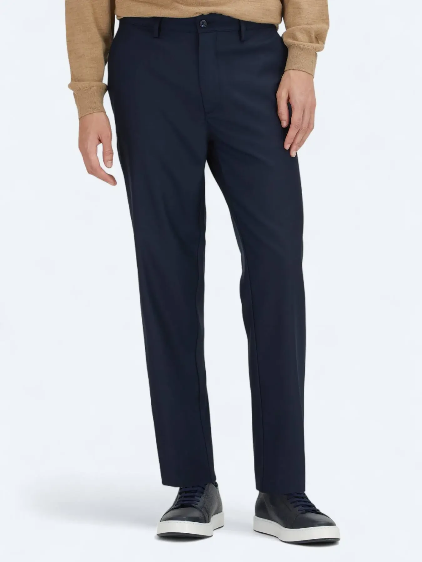 Navy Blue Weaving Regular Fit Casual Trousers - 1
