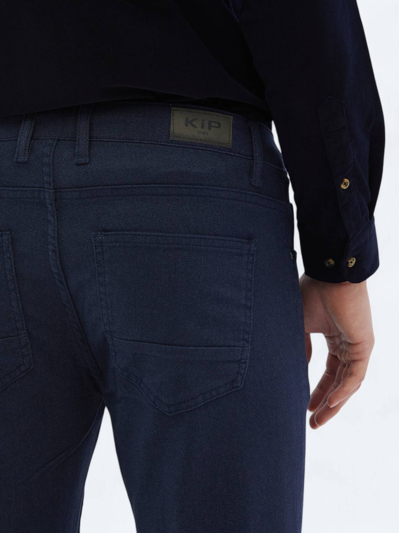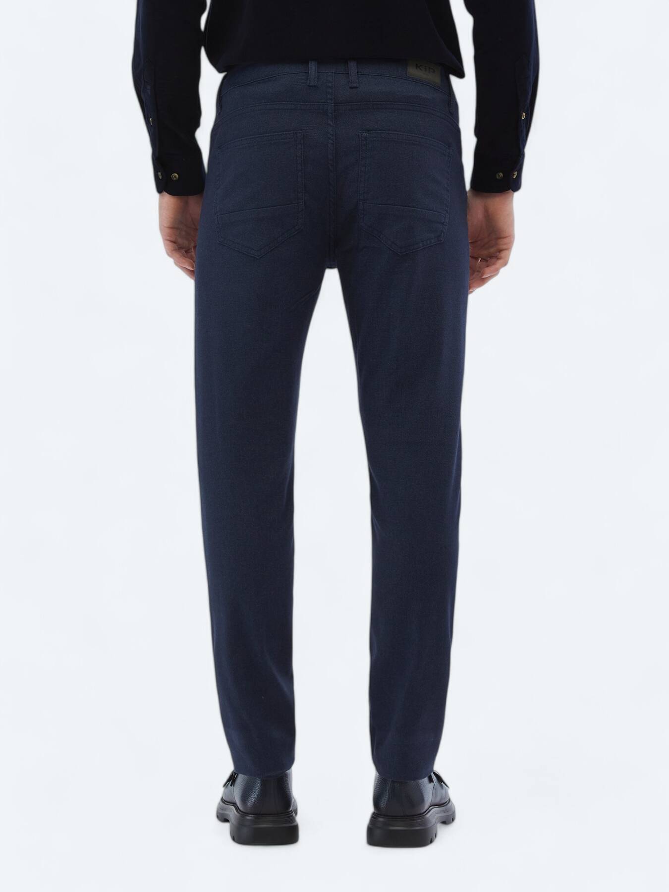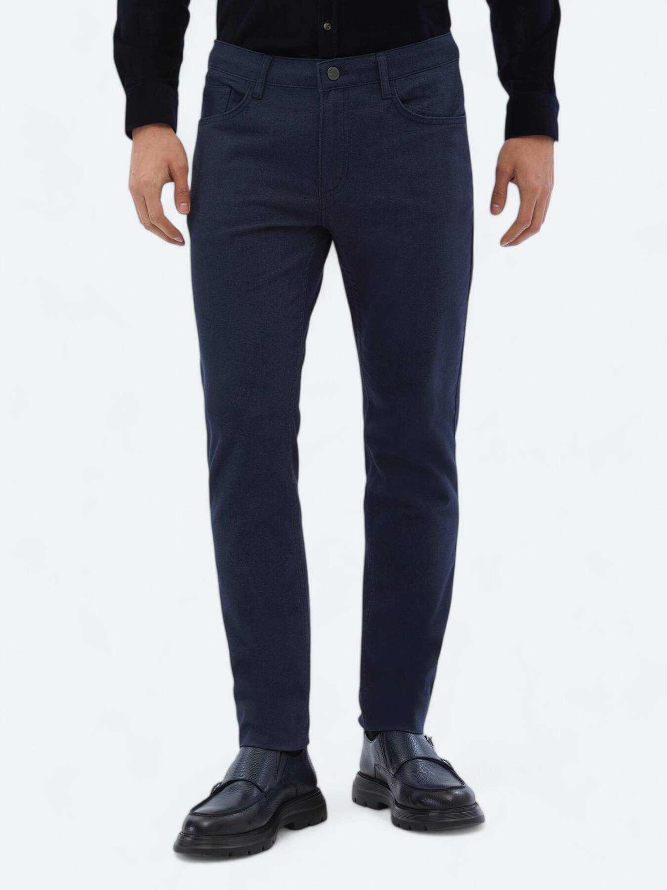 Navy Blue Weaving Slim Fit Casual Cotton Blended Trousers