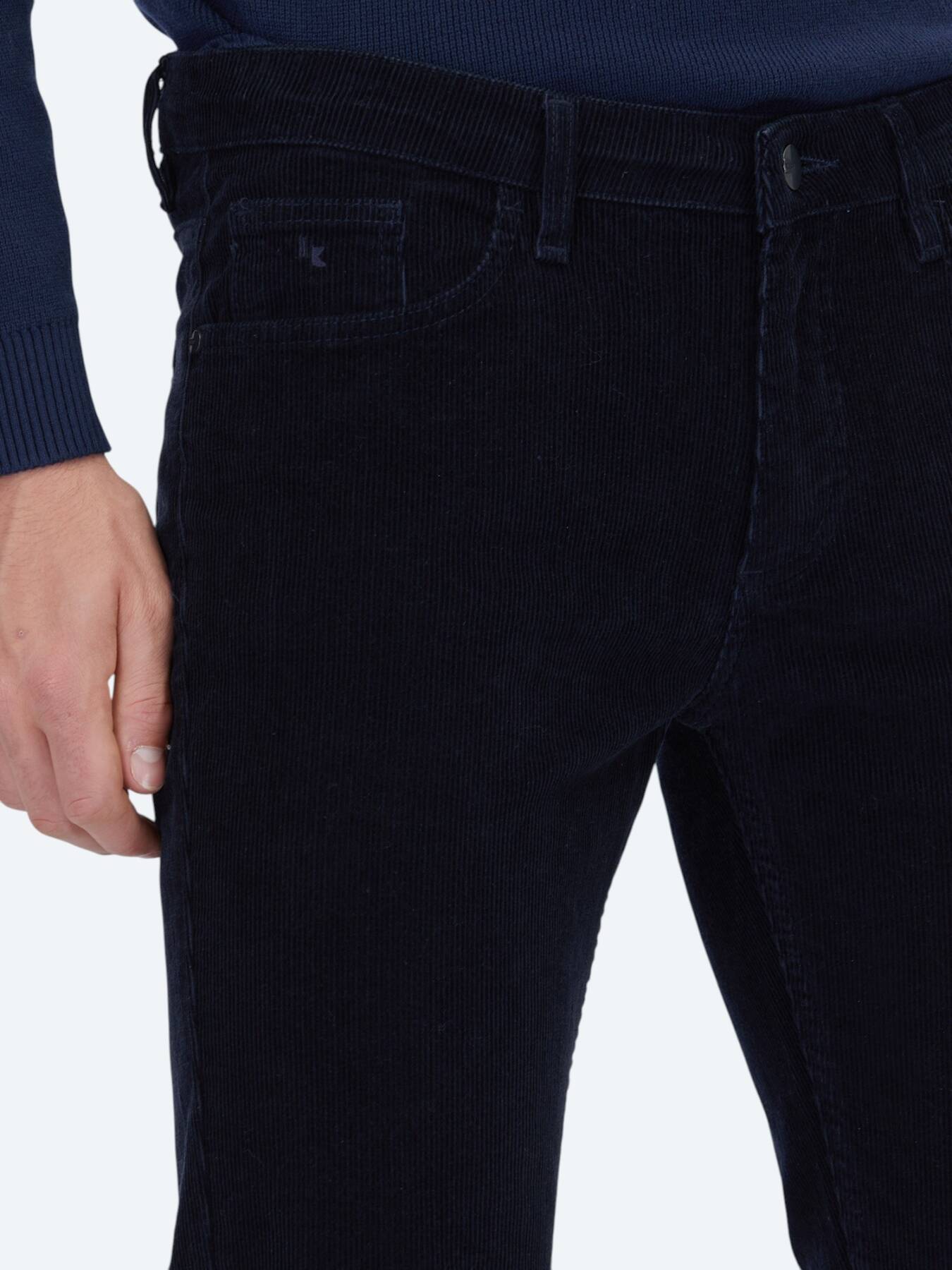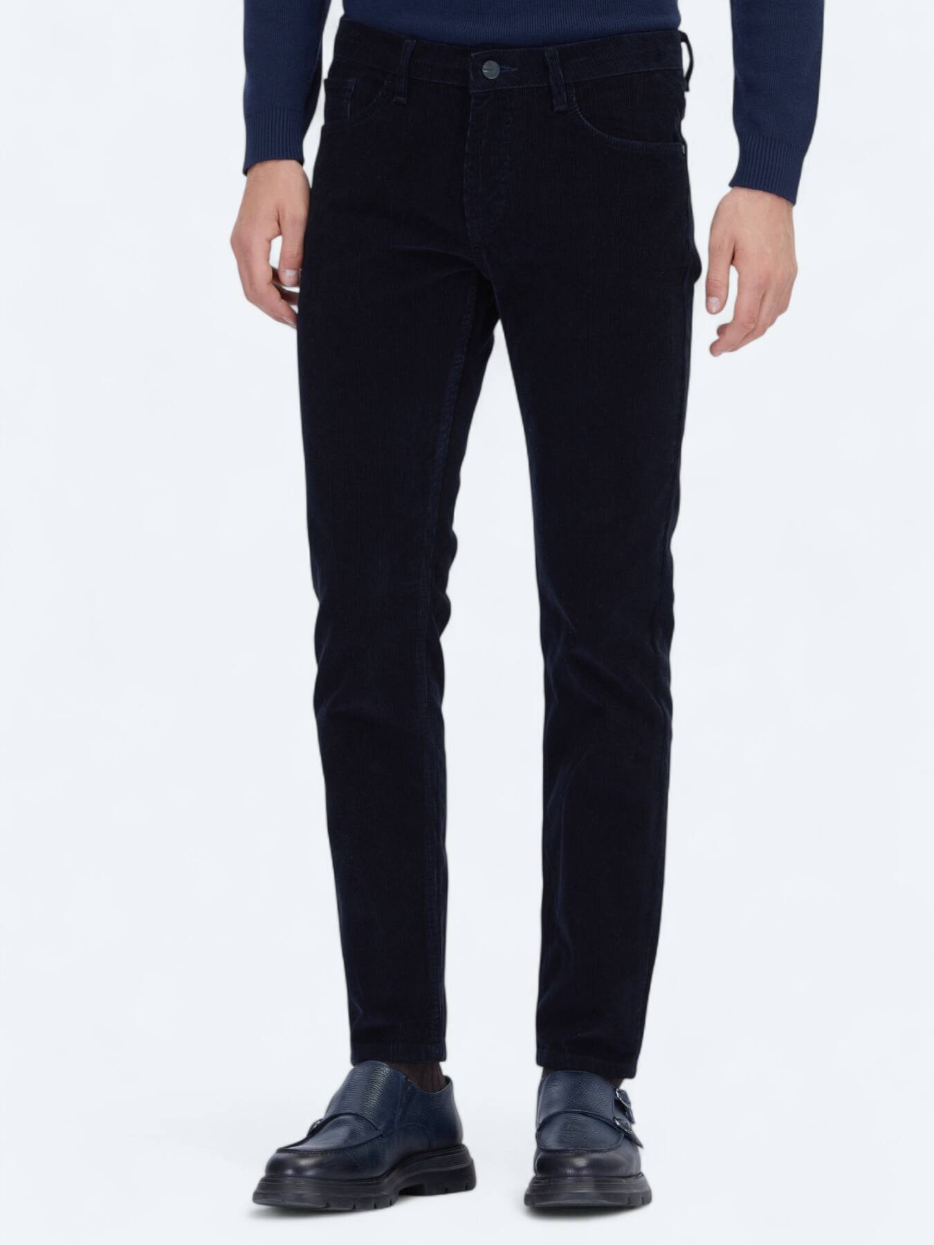 Notify me when its in stockCombining the timeless elegance of the classic navy blue color with the modern cut, these slim fit trousers are one of the most reliable complements to daily style. Thanks to its 98% cotton content, it offers a breathable, soft and skin-friendly use; The 2% spandex additive gives the trousers flexibility and provides freedom of movement all day long.