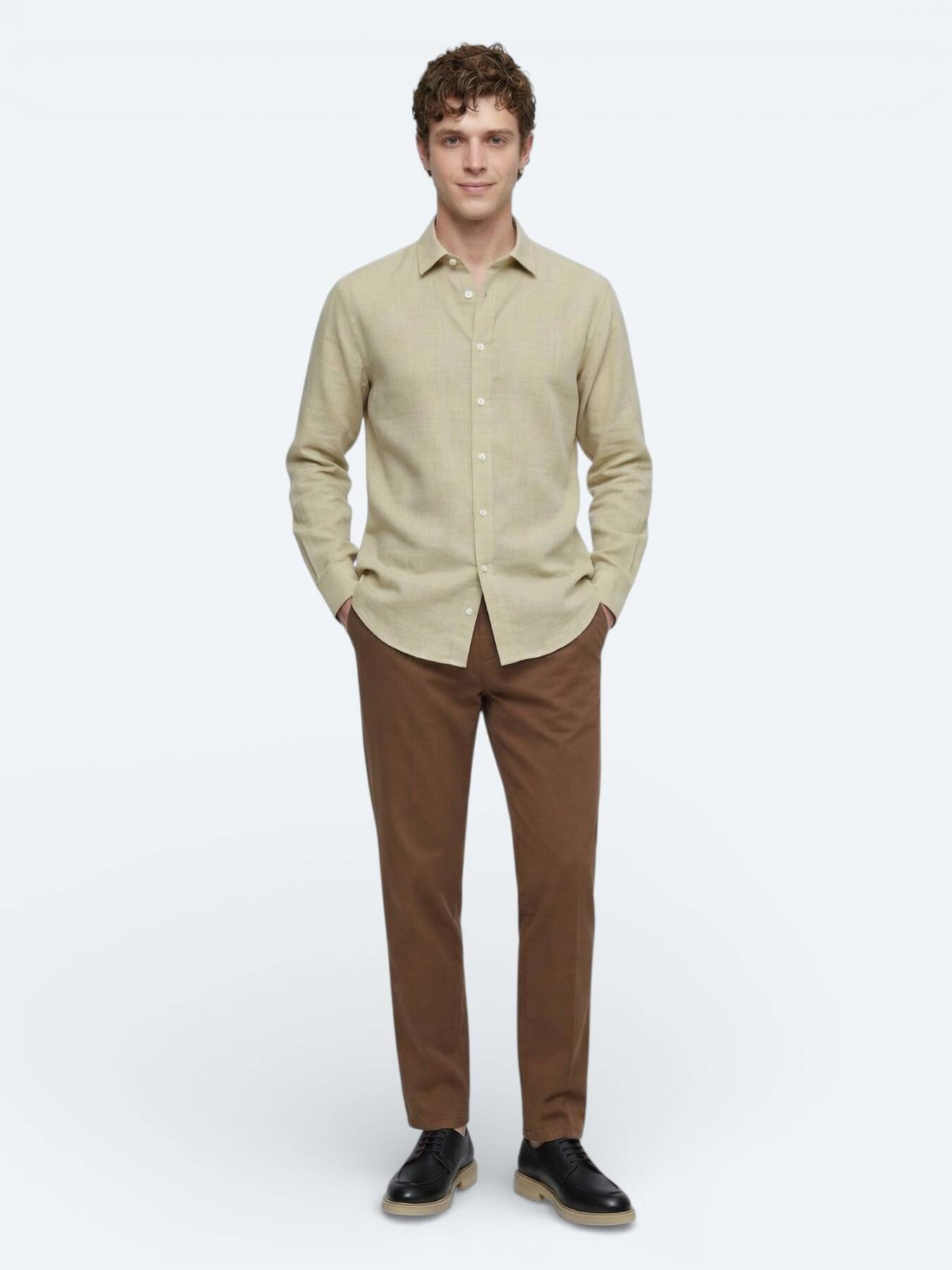 Oil Green Plain Regular Fit Weaving Casual 100% Cotton Shirt