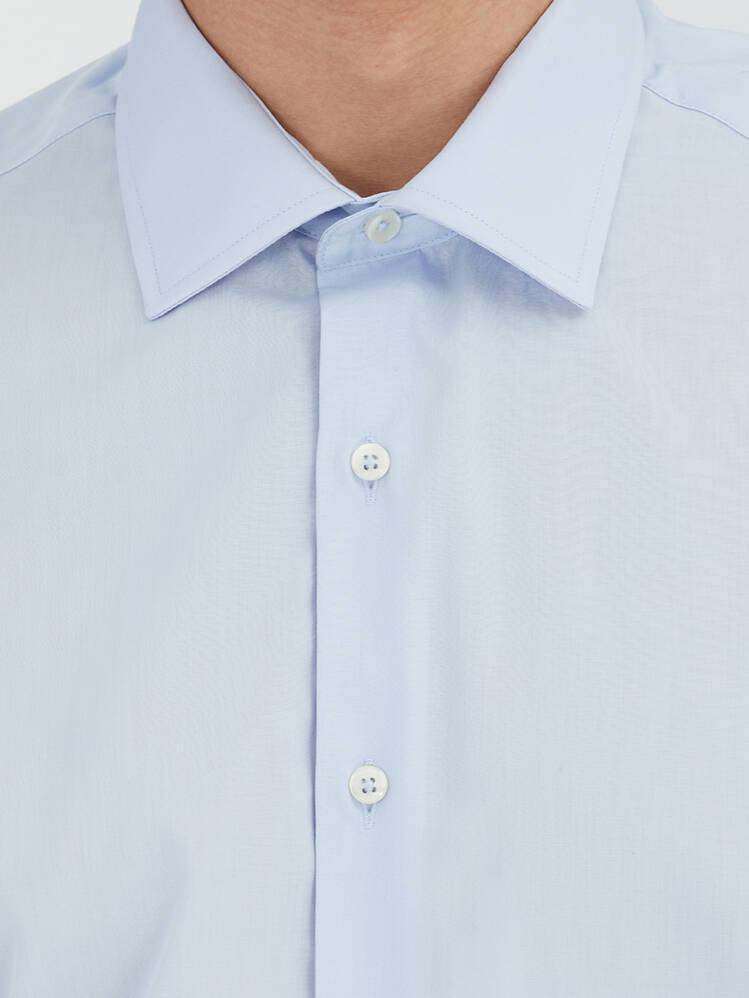 Orta Mavi Regular Fit Dokuma Klasik Pamuk Karışımlı Gömlek - 5