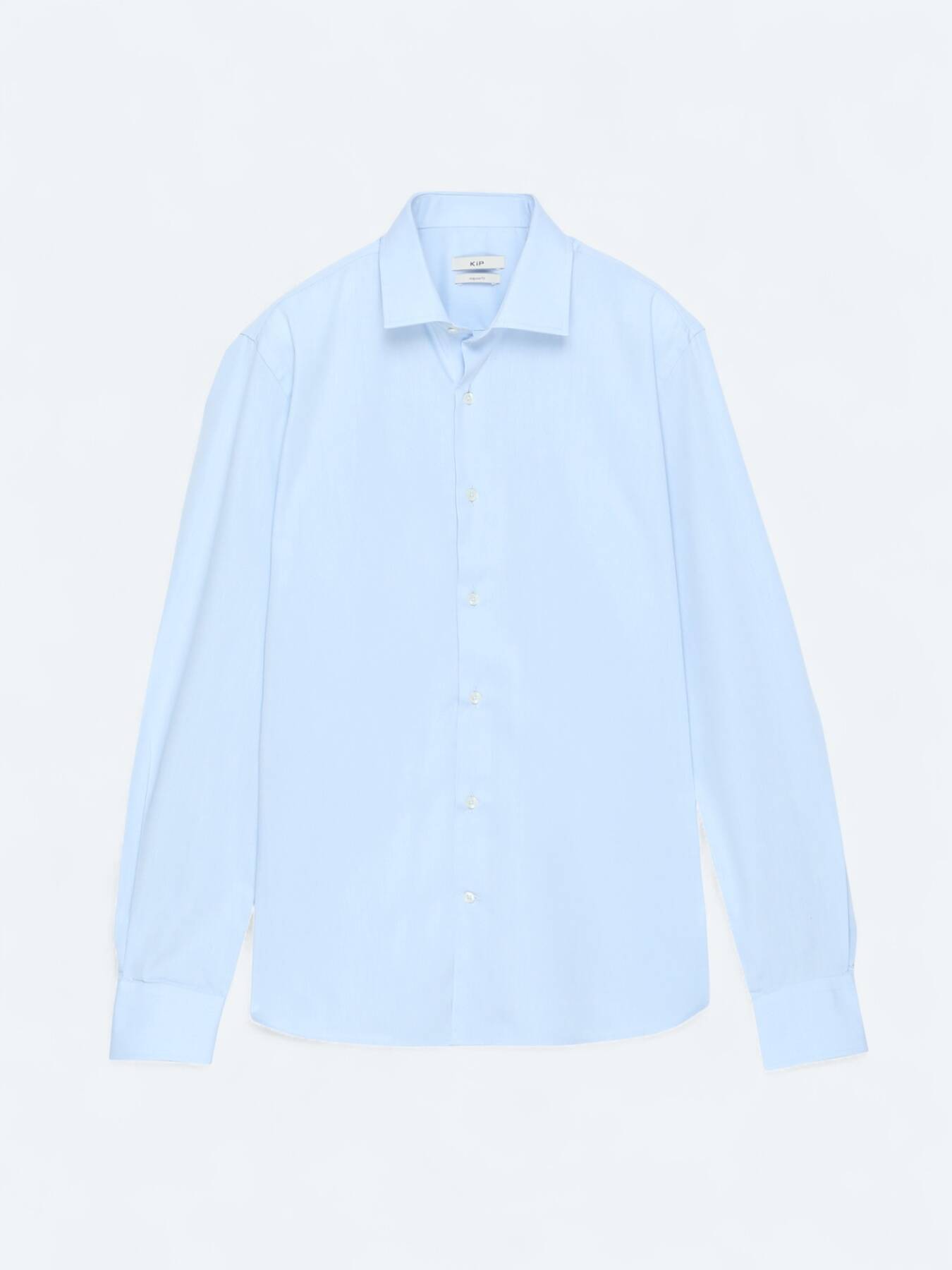 Orta Mavi Regular Fit Dokuma Klasik Pamuk Karışımlı Gömlek - 1