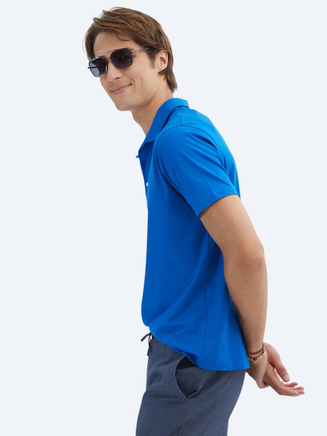 Notify me when its in stockOffering comfort all day long with its 100% cotton content, the sax blue polo neck t-shirt highlights your style with its stance. With its light structure and soft texture, it is a candidate to be one of the favorite pieces of summer days.