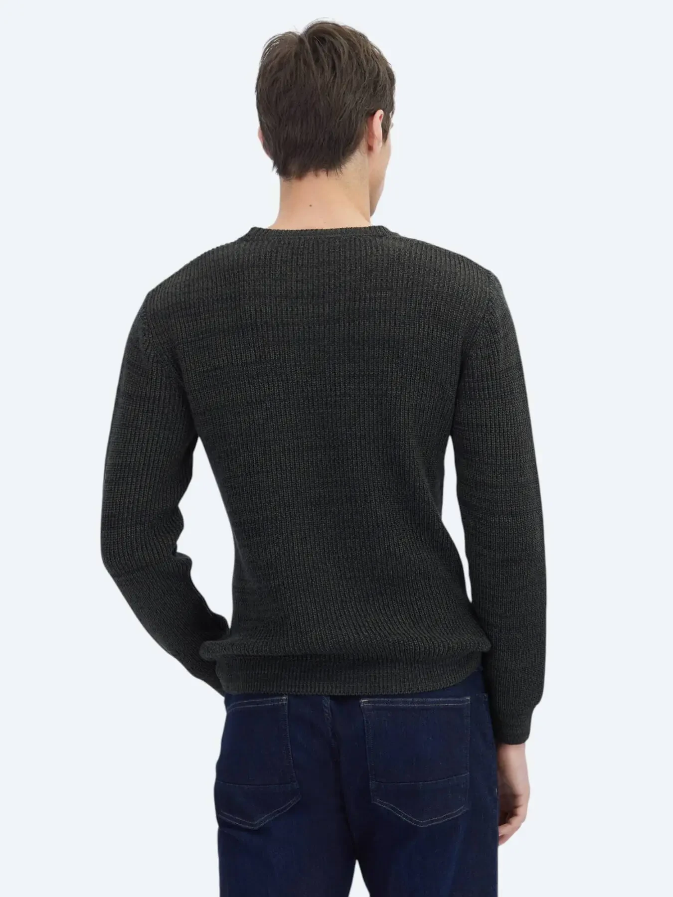 Siyah Bisiklet Yaka Desenli Pamuk Karışımlı Triko Kazak