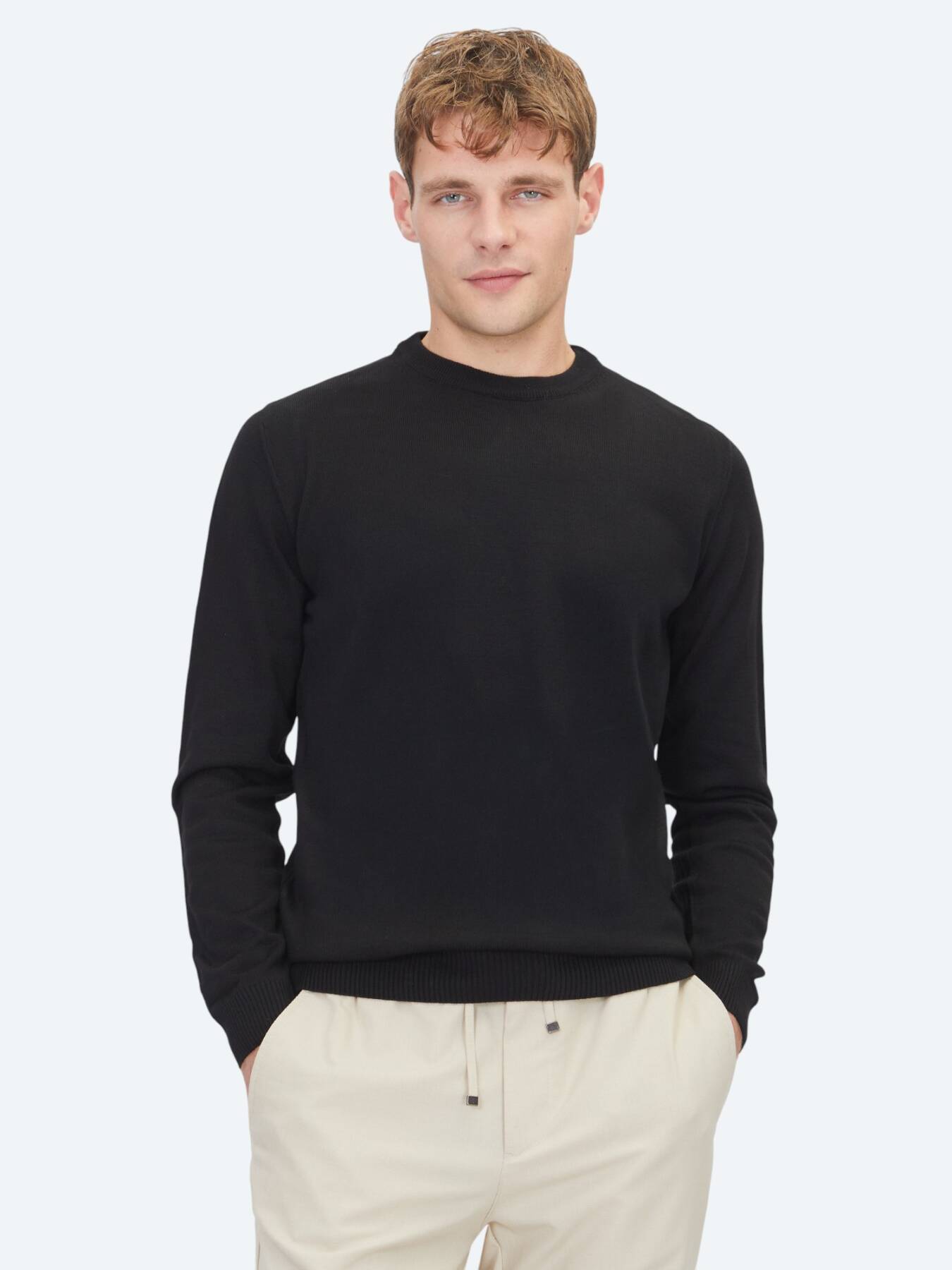 Gelince Haber VerDüz örgü dokusuyla sade bir şıklık sunan bu siyah kazak, kış günlerinde konforlu bir görünüm sağlar.