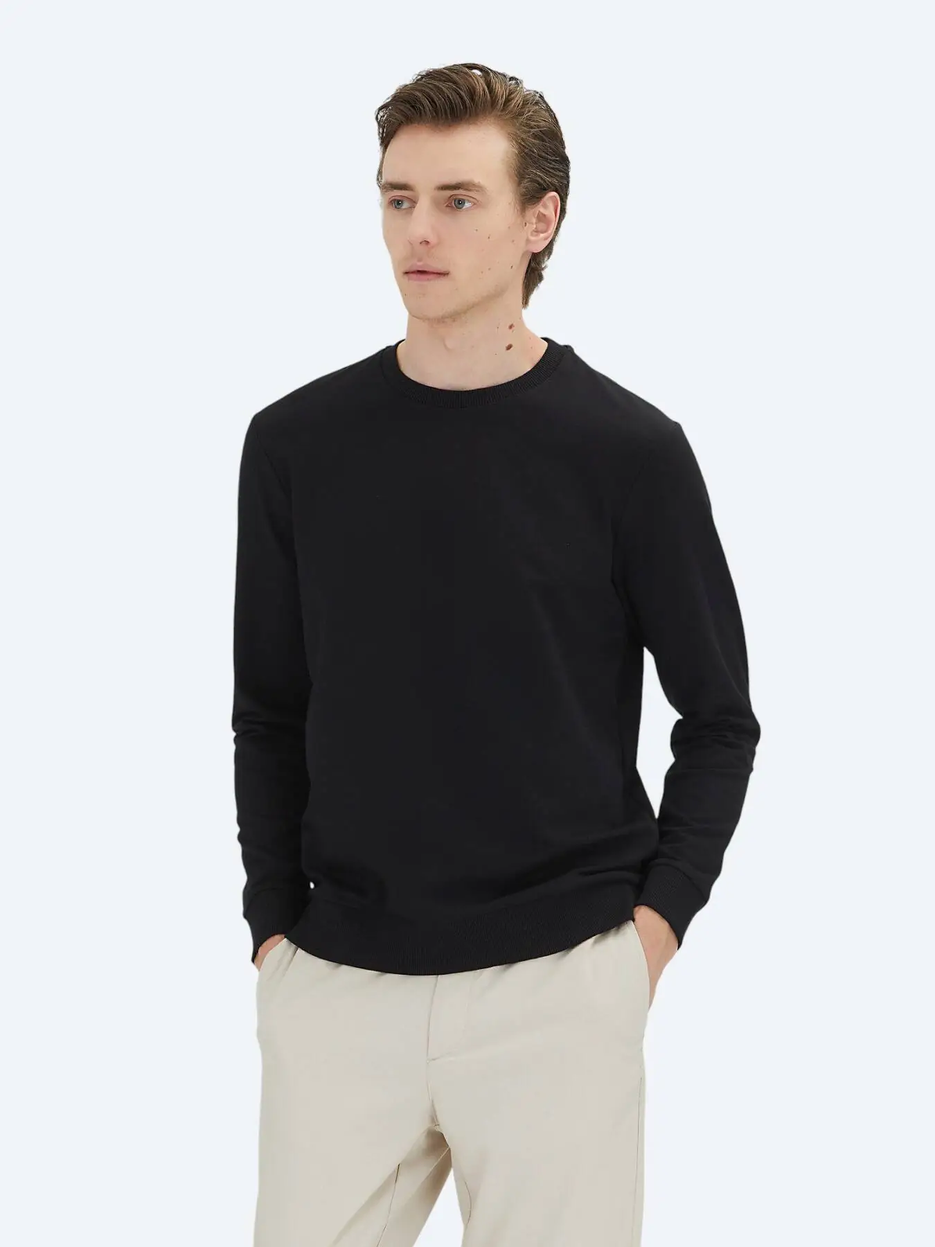 Siyah Bisiklet Yaka Sweatshırt - 1