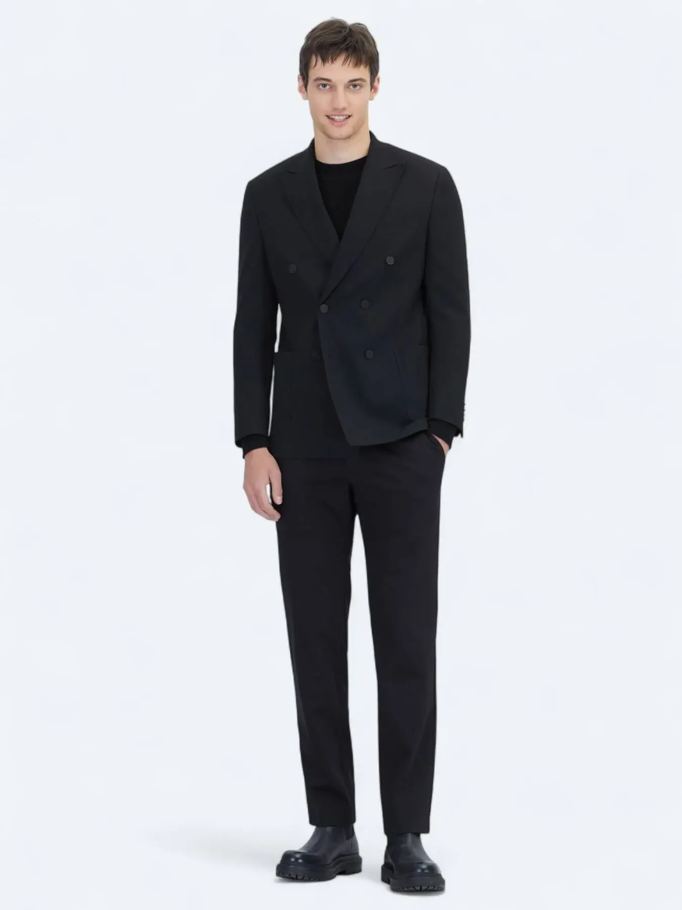 Comfort fit kesimiyle rahat bir kullanım sunan bu siyah kruvaze ceket-klasik tarzı modernleştirir.