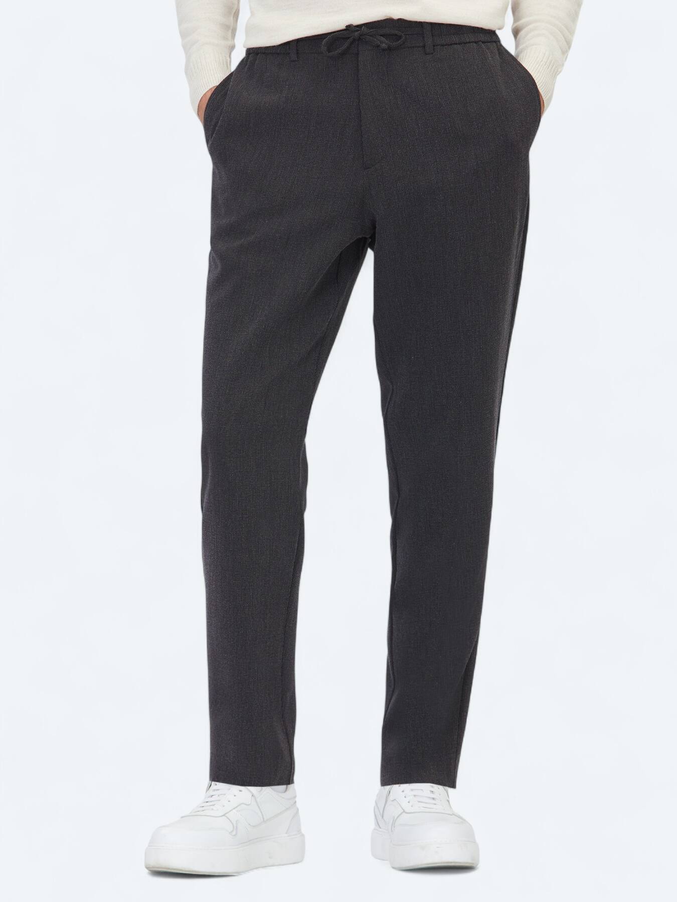 Siyah Çizgili Dokuma Jogging Fit Casual Pantolon - 1