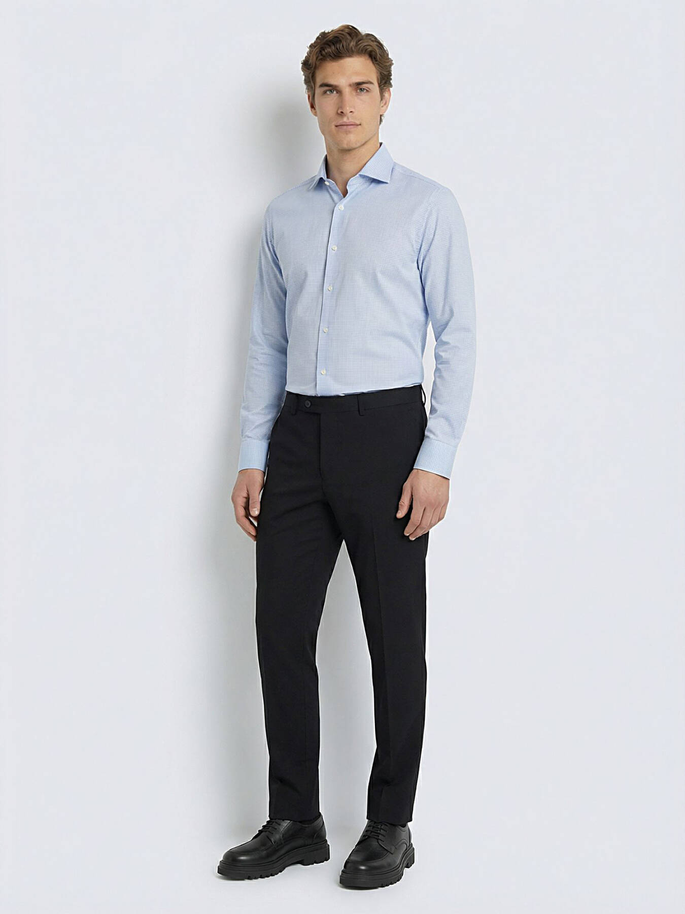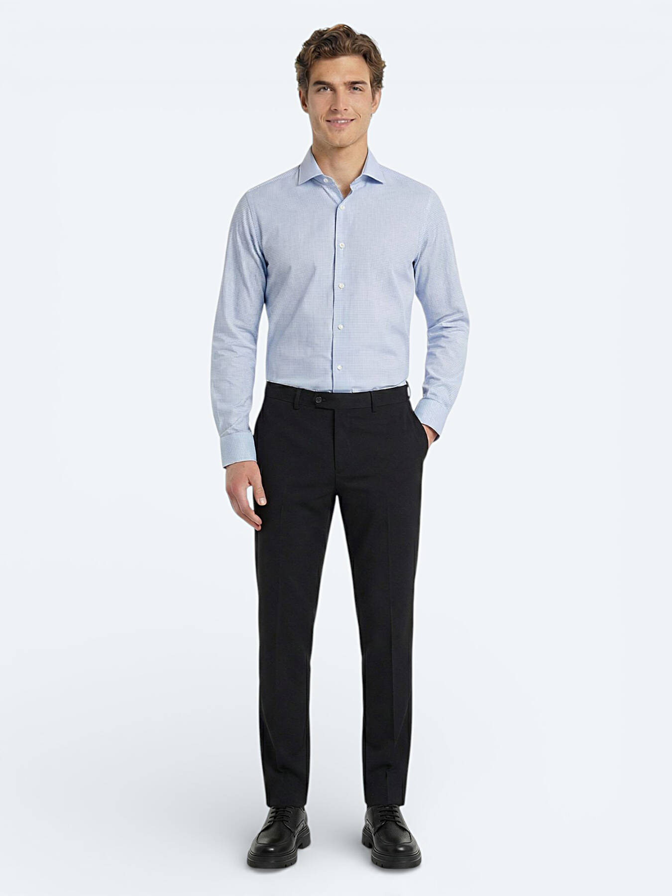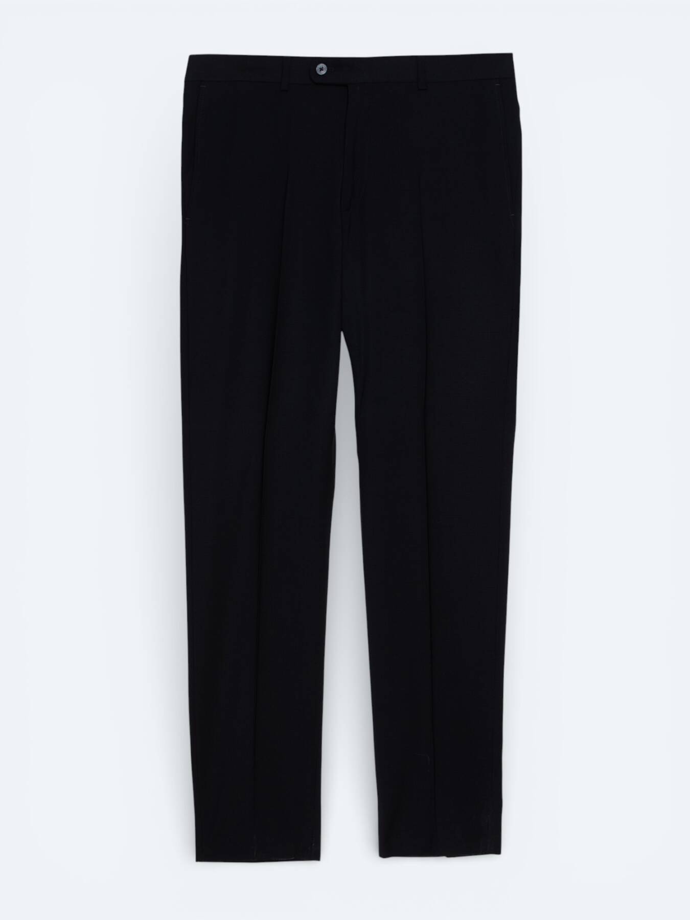 Siyah Dokuma Fitted Fit Klasik Yün Karışımlı Pantolon