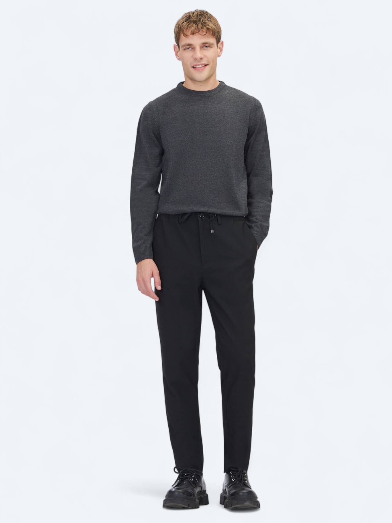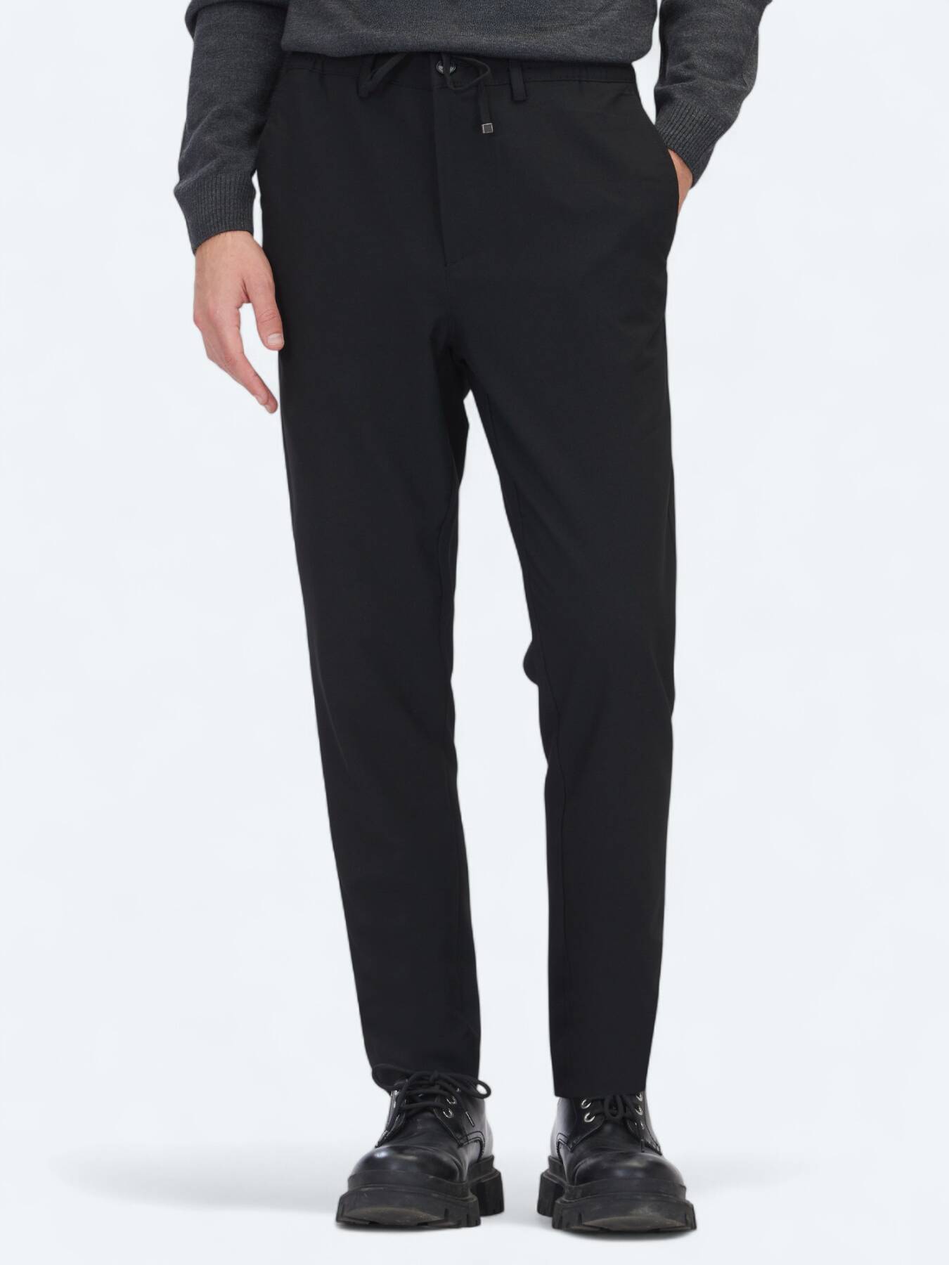 Siyah Düz Dokuma Jogging Fit Casual Pantolon - 1