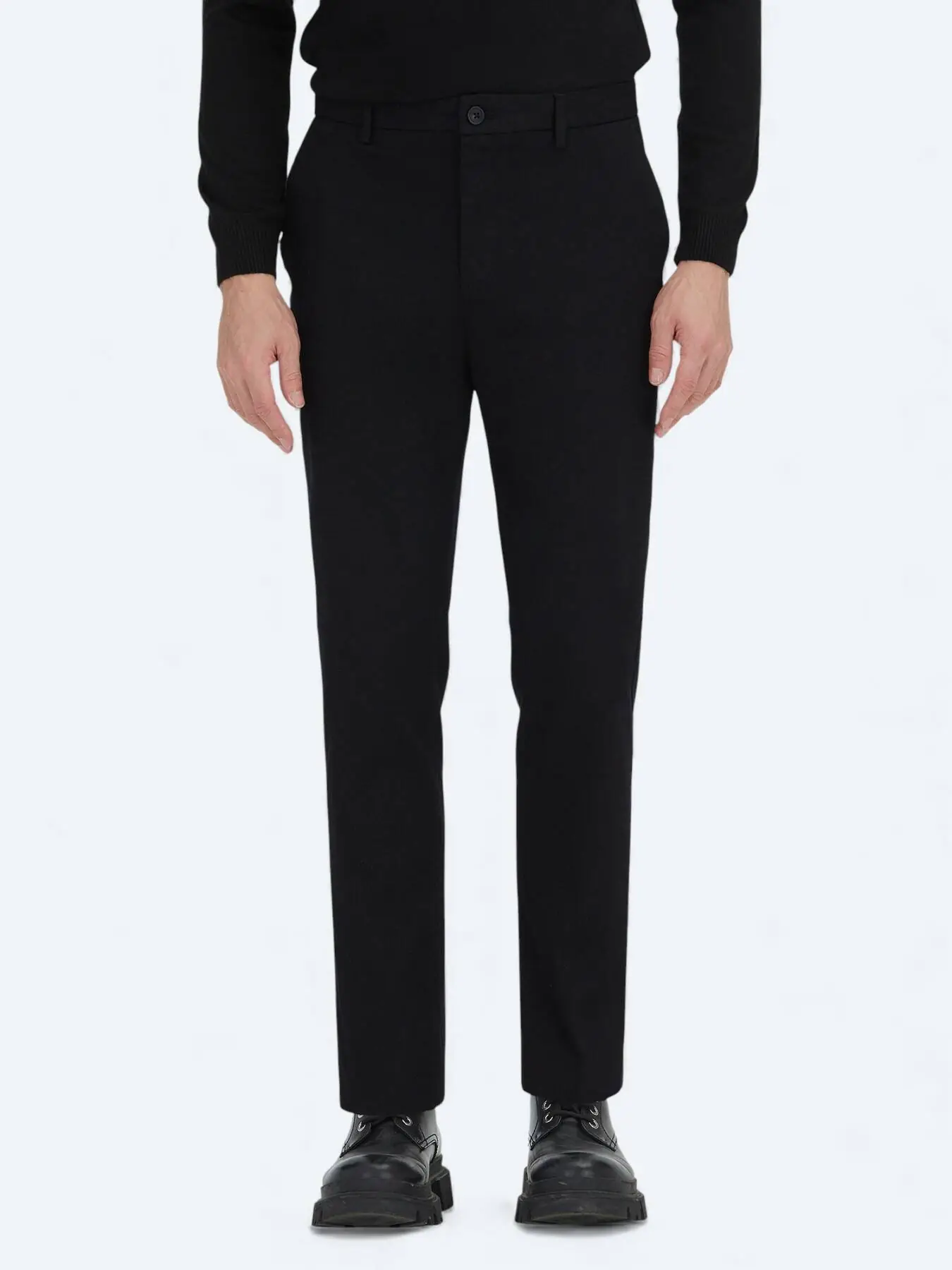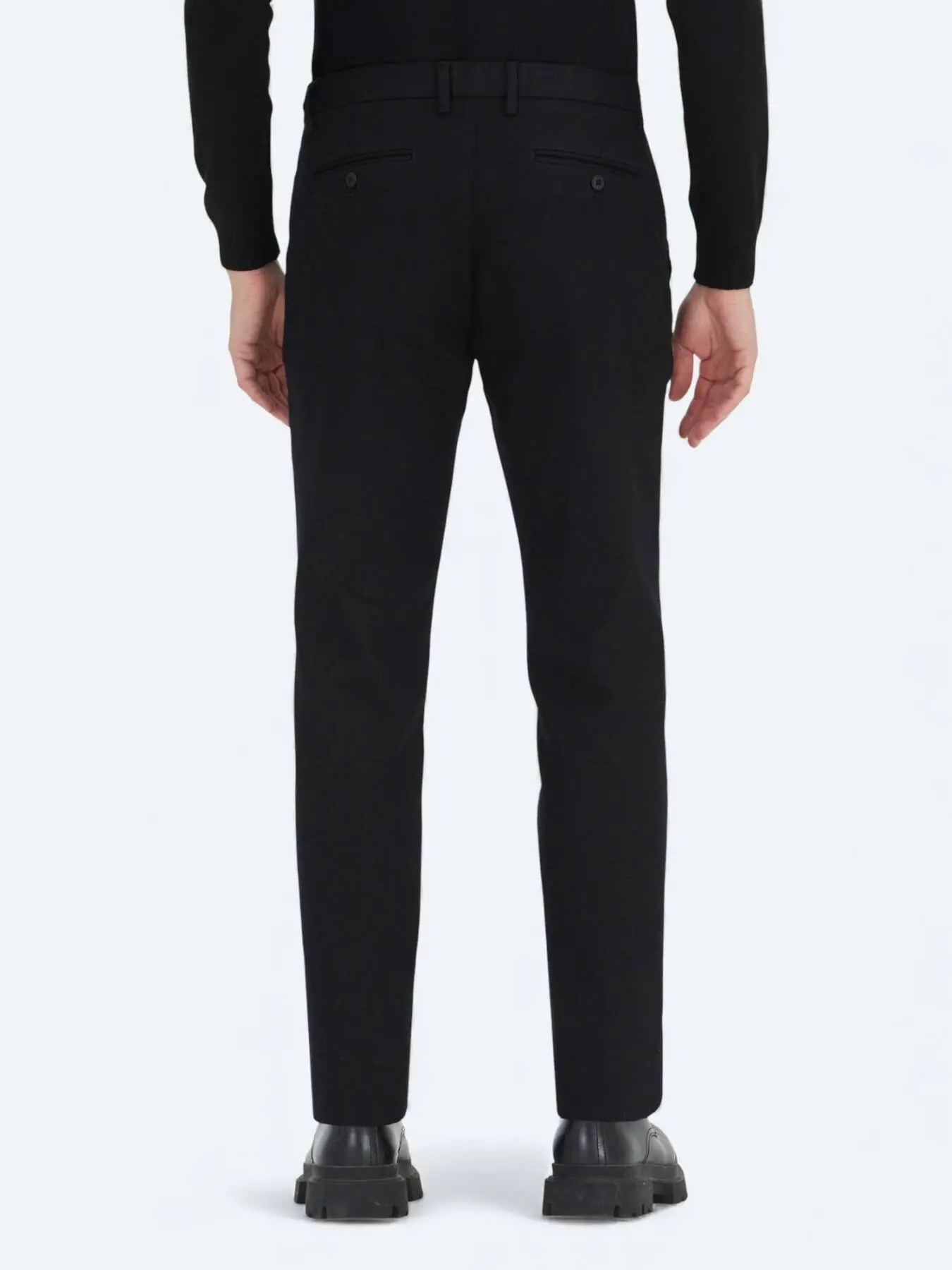 Siyah Düz Dokuma Regular Fit Casual Pamuk Karışımlı Pantolon - 1