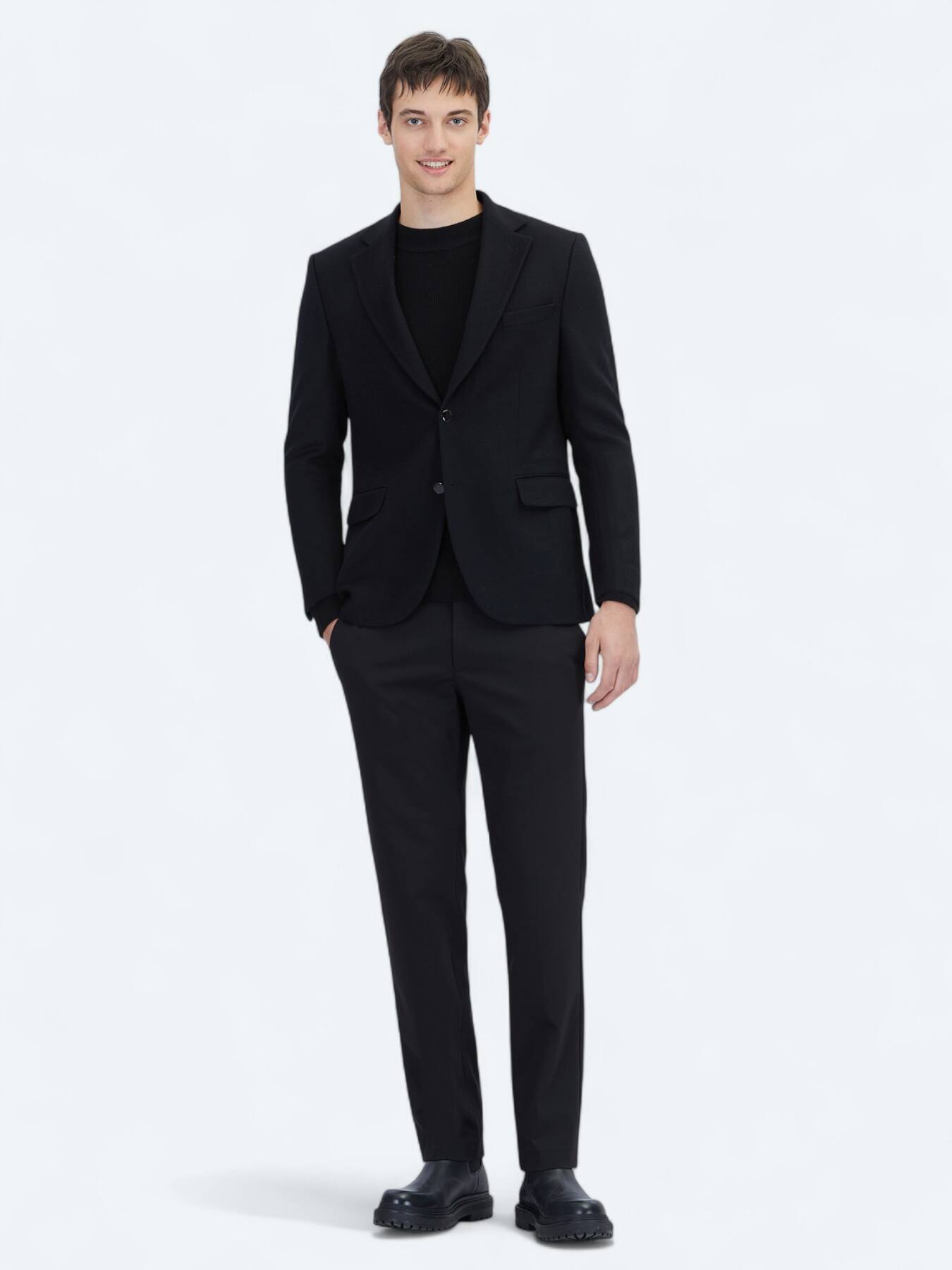 Siyah Düz Modern Fit Yün Karışımlı Ceket