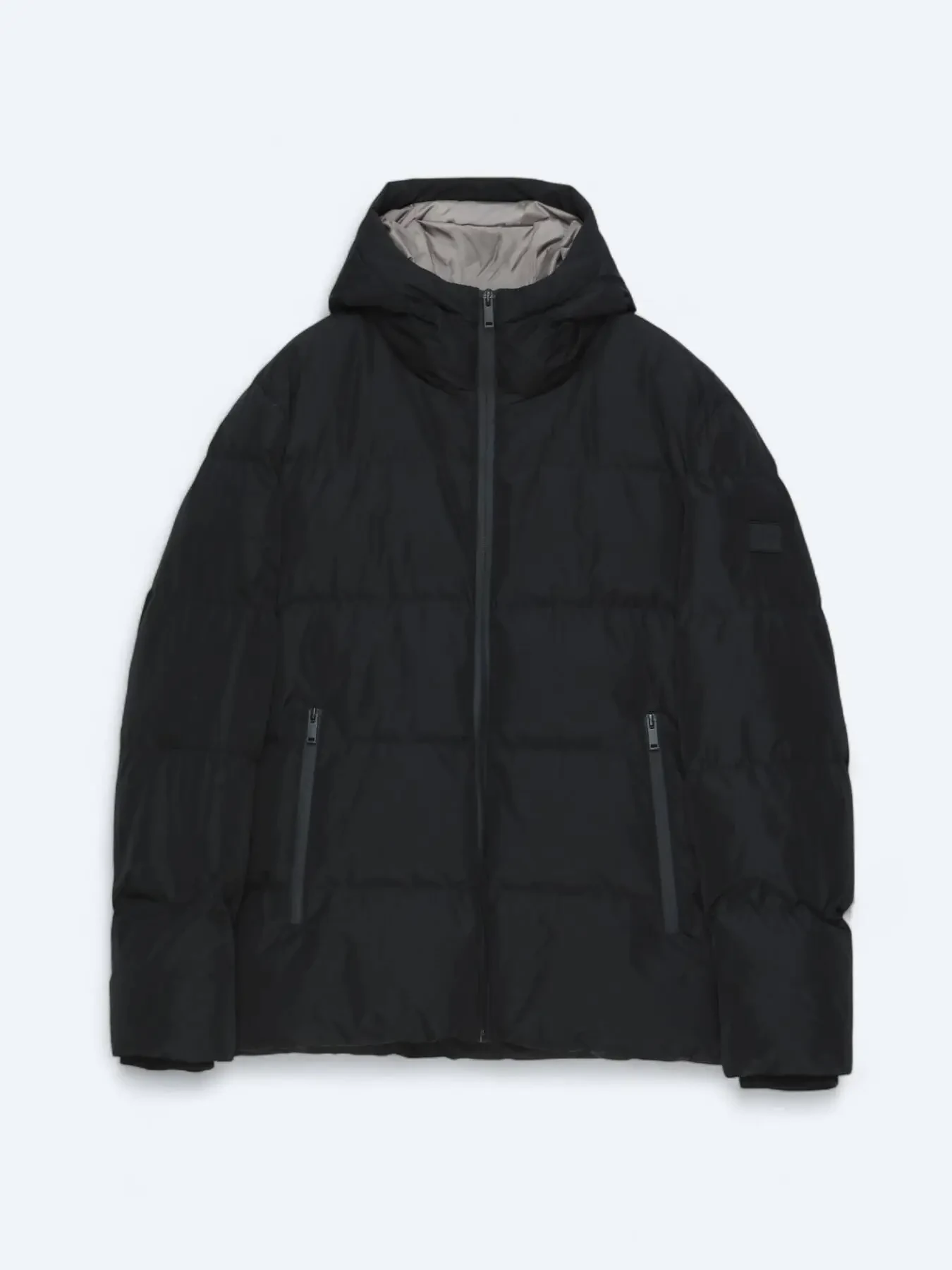 Siyah Kapüşonlu Casual Dokuma Kaban