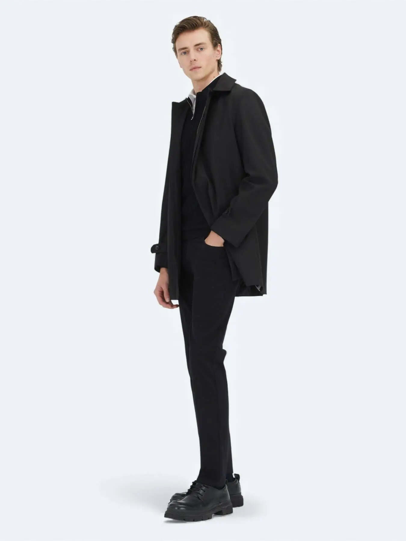 Siyah Regular Fit Bebe Yaka Casual Dokuma Pardesü