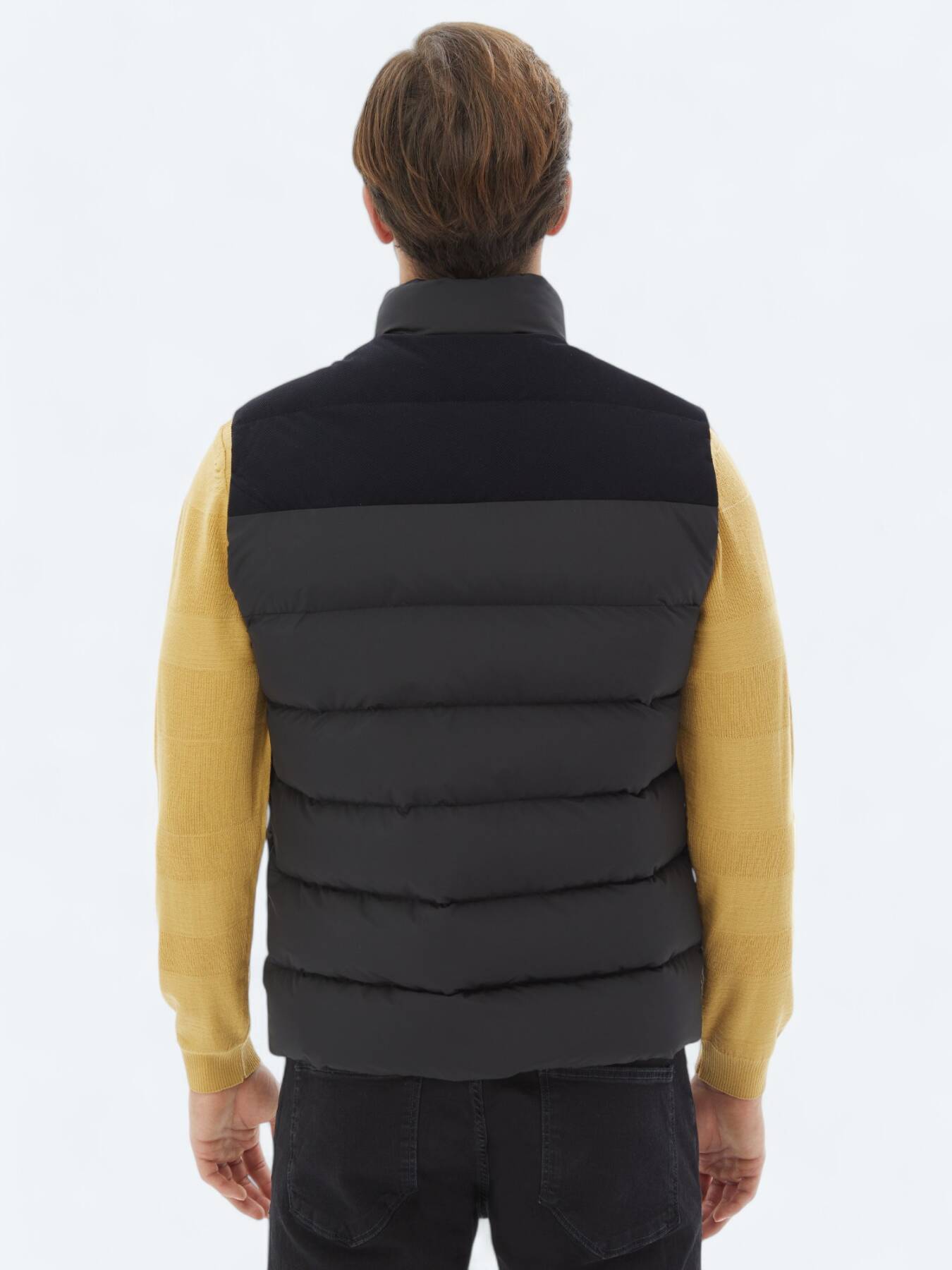 Siyah Regular Fit Dik Yaka Casual Dokuma Spor Yelek