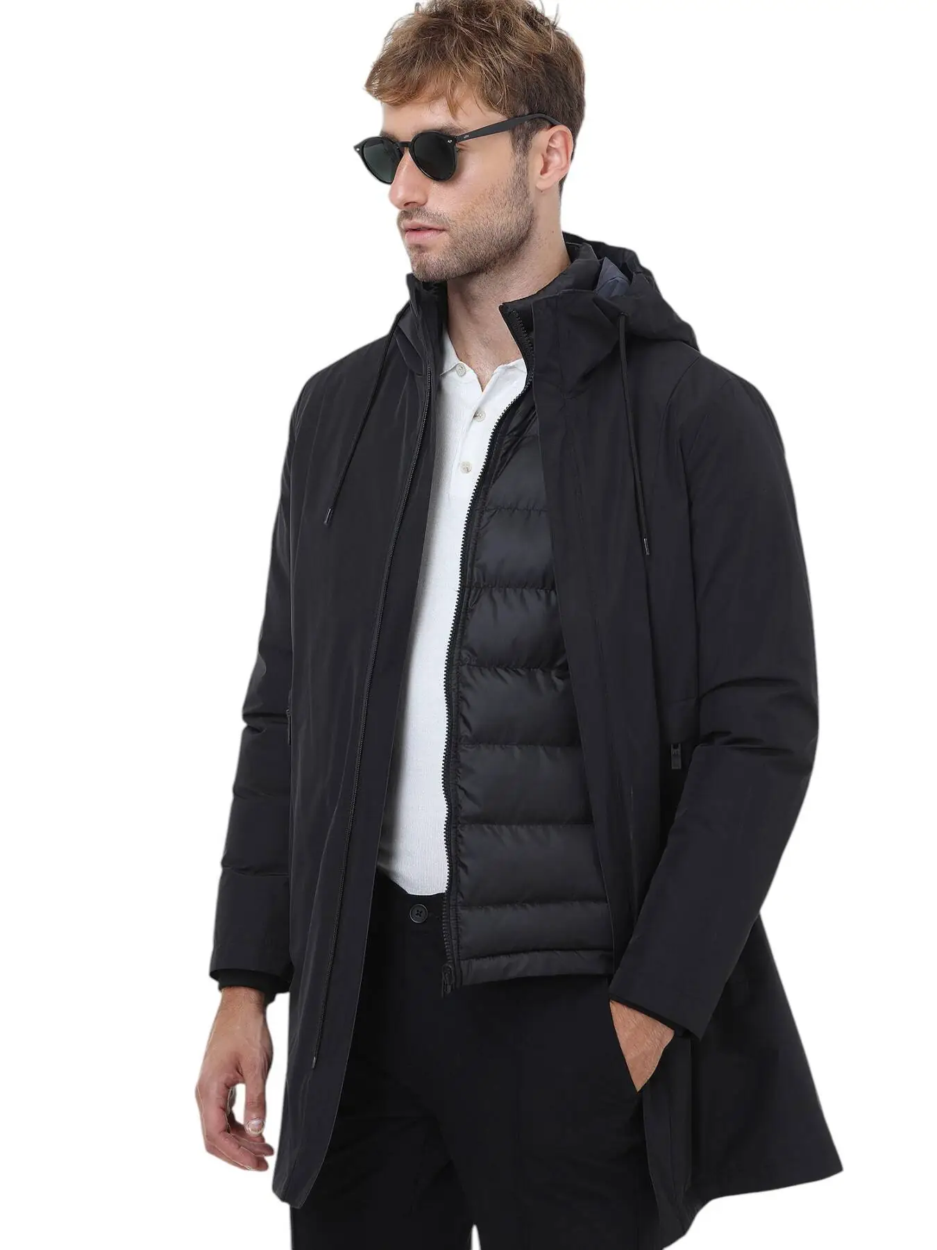 Notify me when its in stockRegular fit top coat with a zipper on the front and a hood, designed with flexible fabric. It can be used alone or with a removable coat inside. Zippered side pocket that supports functionality. Warmth all day long with its soft texture.