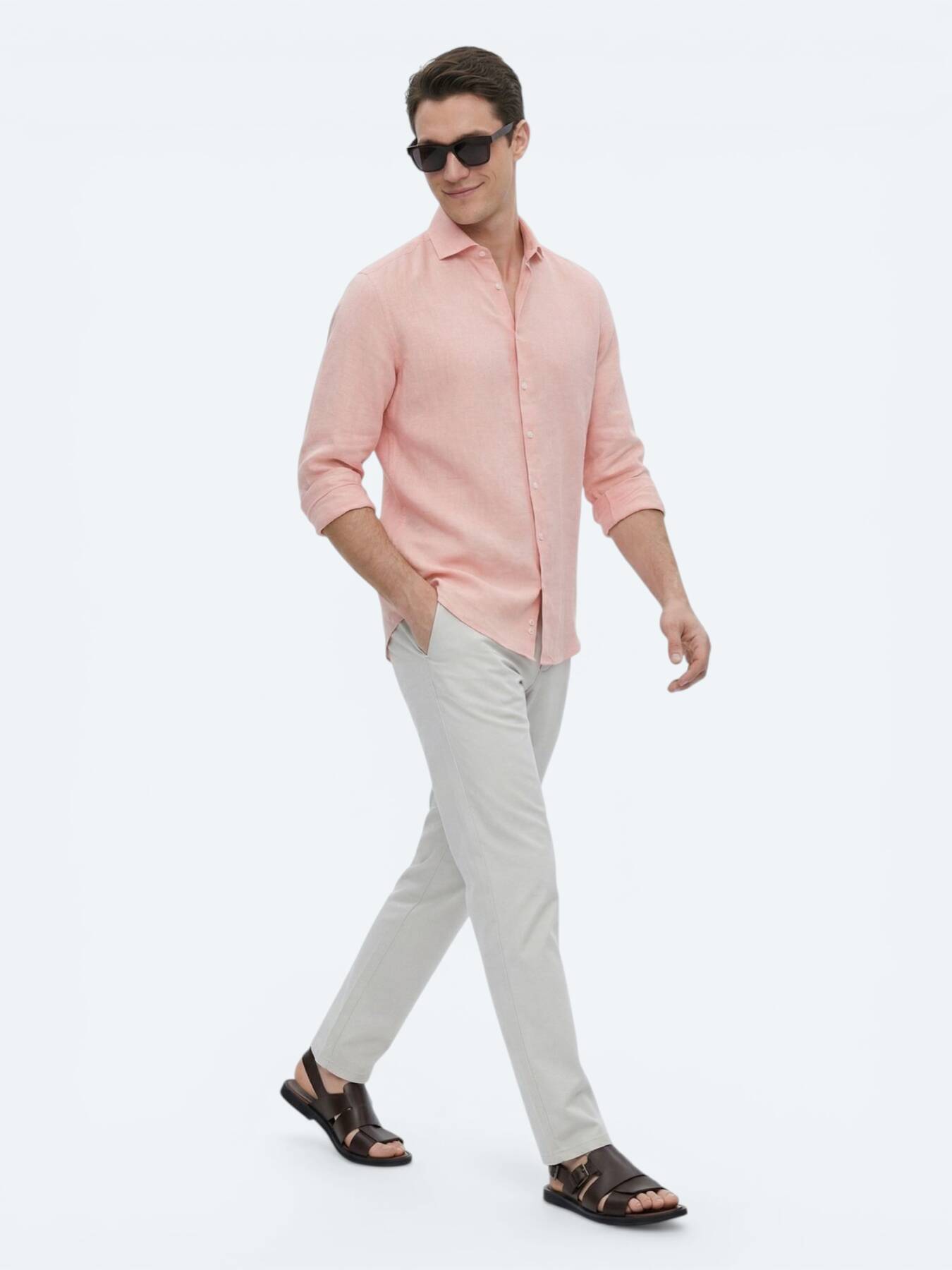 Gelince Haber VerYaz gardırobunun en keyifli renklerinden biri olan somon tonunda tasarlanmış bu casual gömlek, hem rahat hem şık bir stil vaat ediyor. Regular fit kesimi sayesinde dengeli ve doğal bir siluet sunar; gün boyu konforlu bir kullanım sağlar.