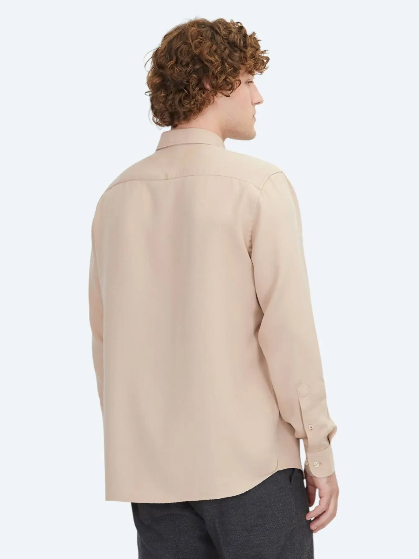 Gelince Haber VerYumuşak dokusu ve dökümlü formuyla konforlu bir şıklık sunan bu somon gömlek, %100 Lyocell kumaştan üretilmiştir.