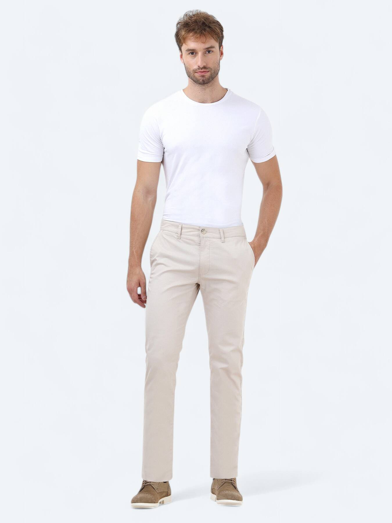 Stone Weaving Slim Fit Casual Cotton Blended Trousers