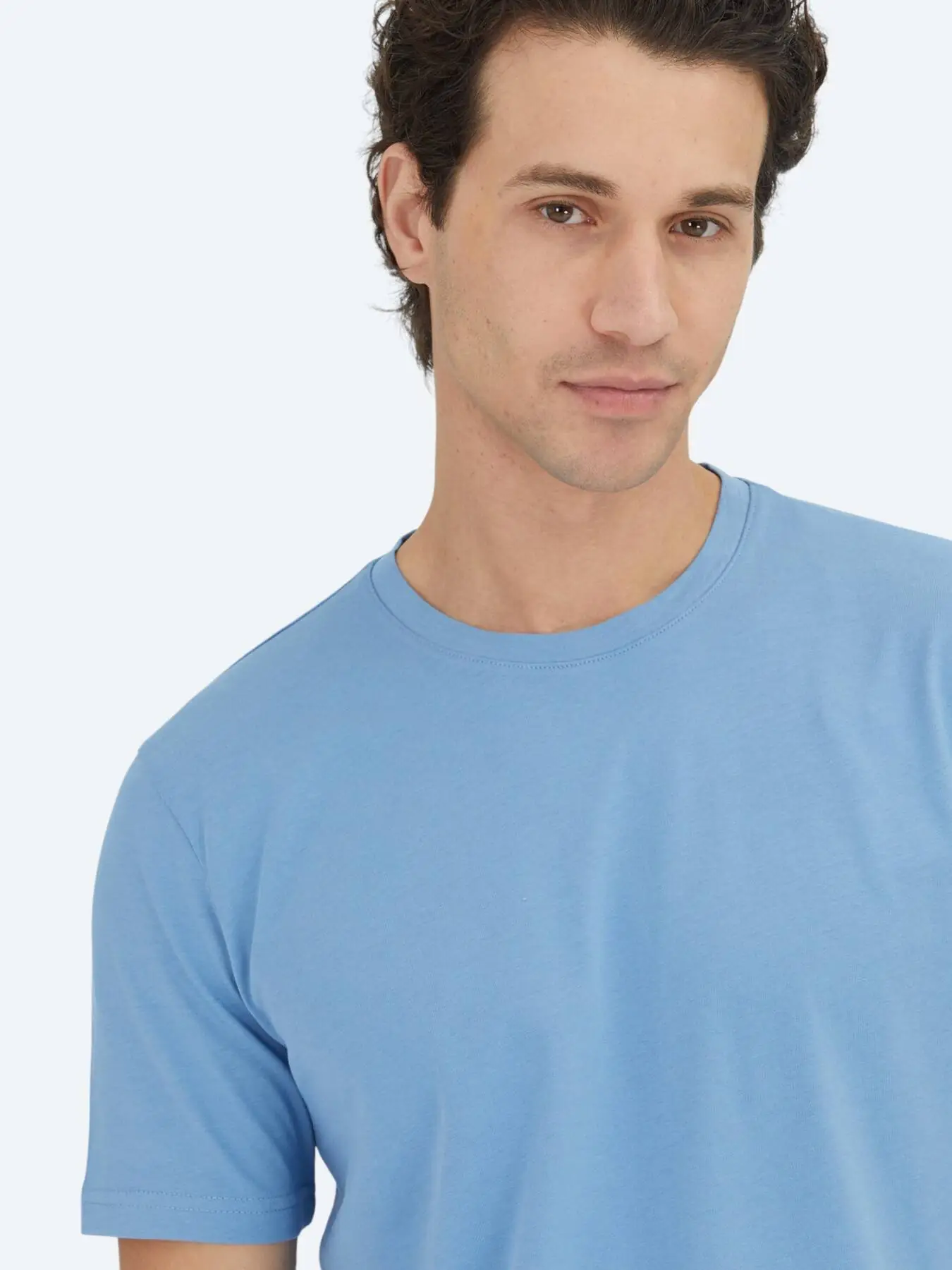Unisex Blue Plain Crew Neck 100% Cotton T-Shirt - 6