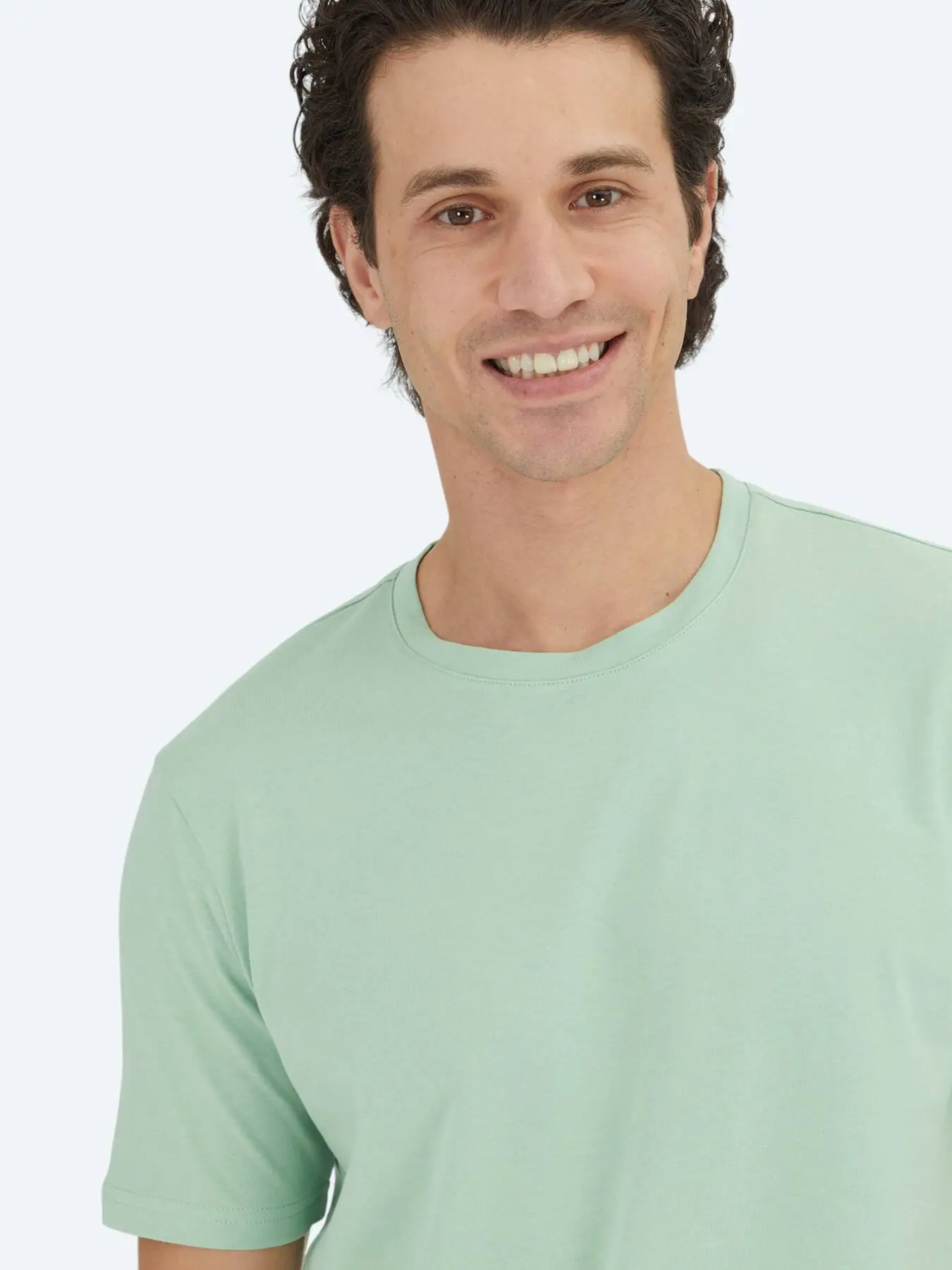 Unisex Mint Düz Bisiklet Yaka %100 Pamuk T-Shirt - 3